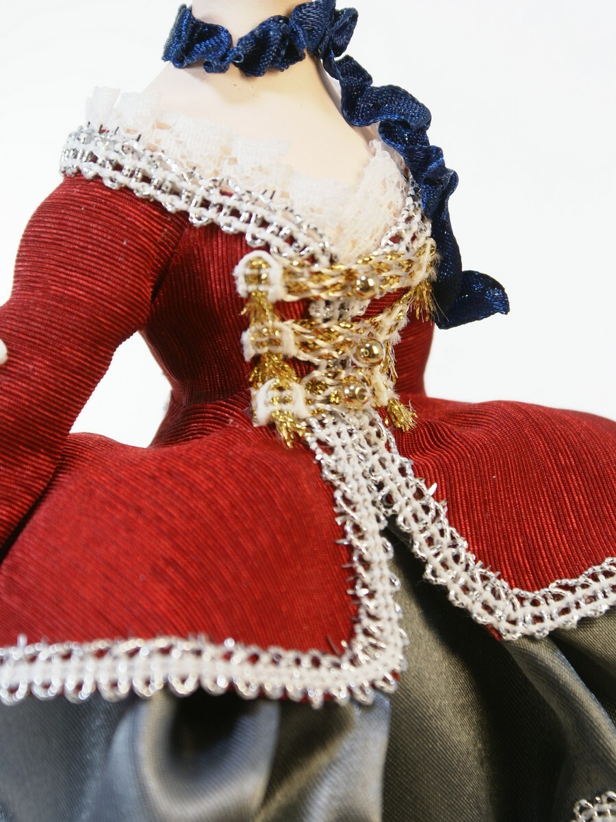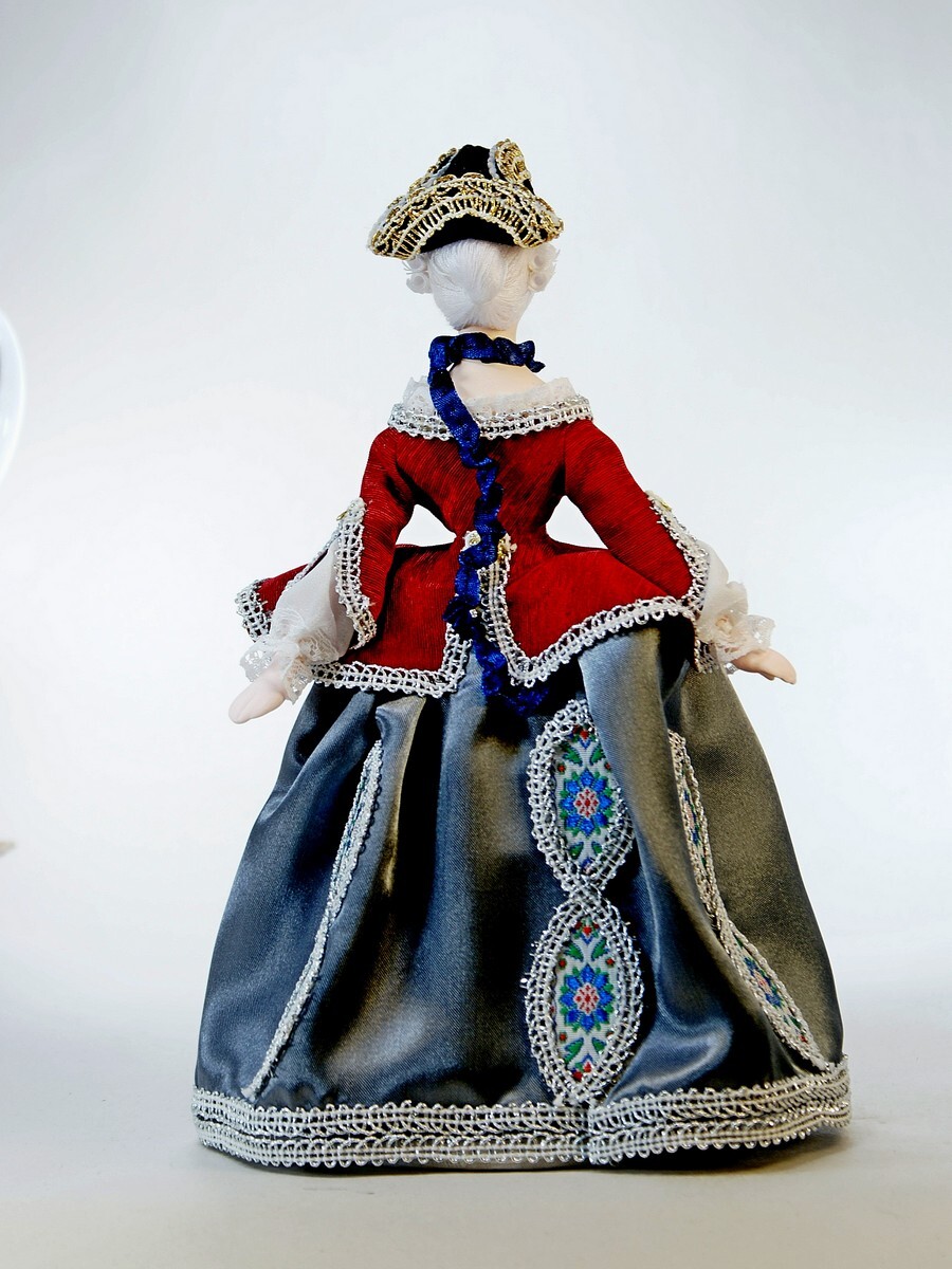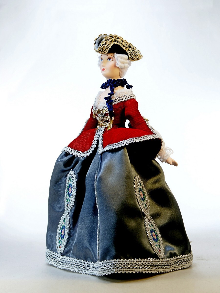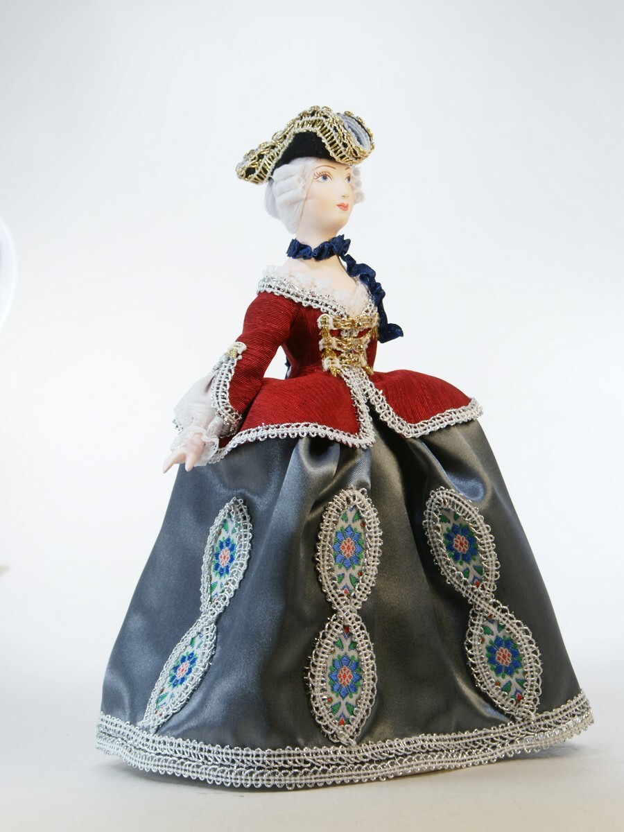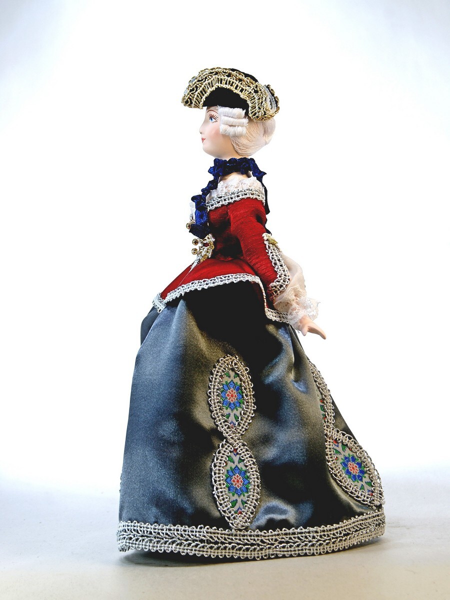 Дама в костюме для верховой езды 18 века. Наездница\n\nКукла интерьерная ручной работы из коллекции Исторический костюм. Для подарка, для интерьера, в коллекцию. Фарфор, текстиль. Высота 27 см.