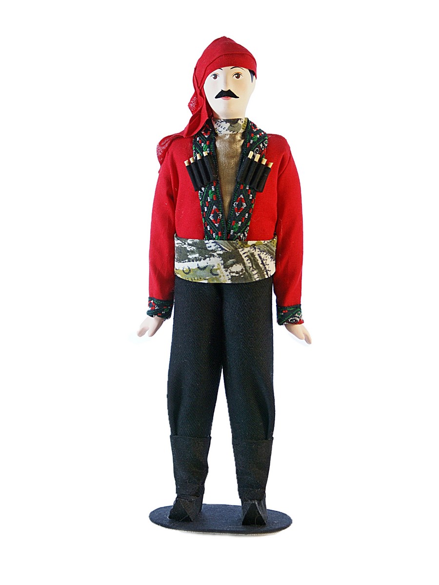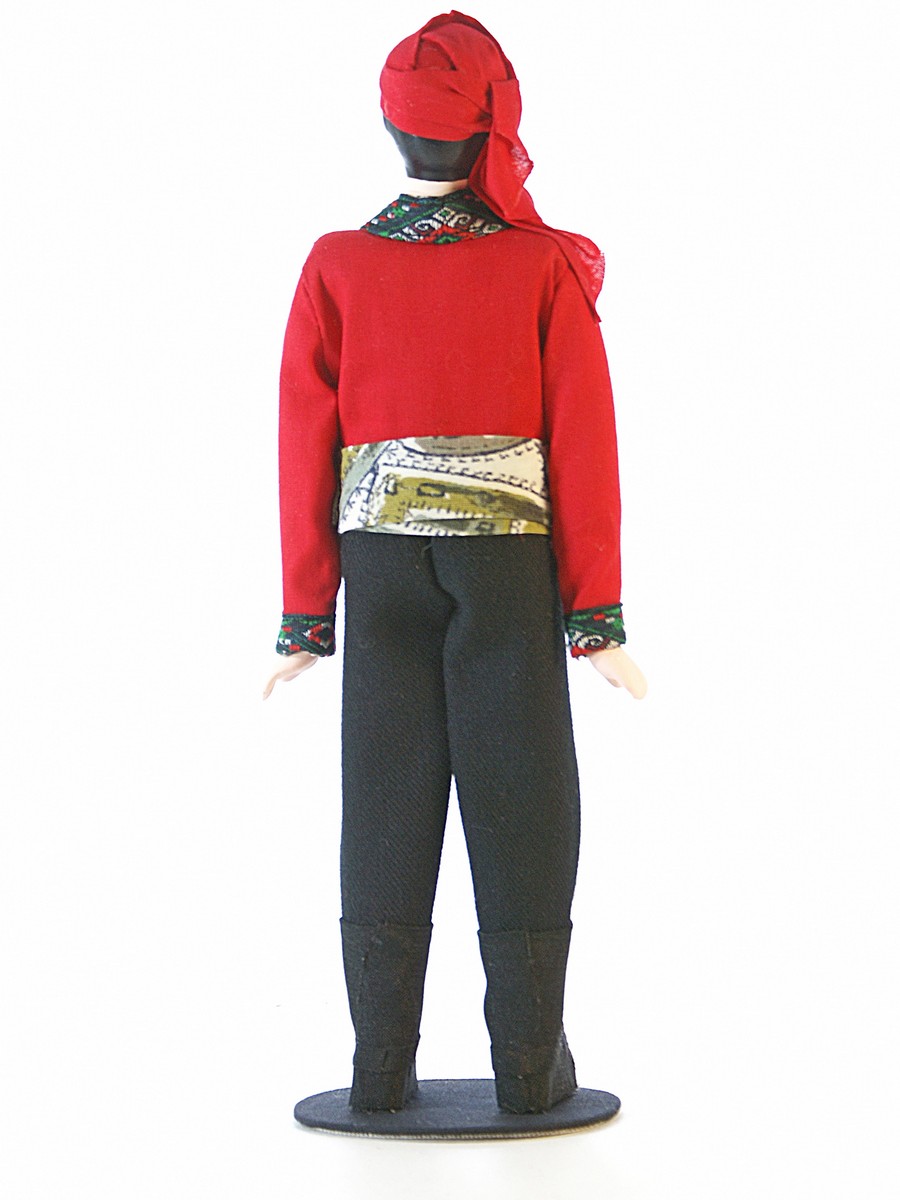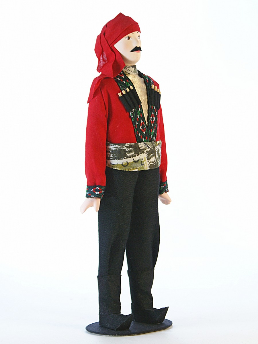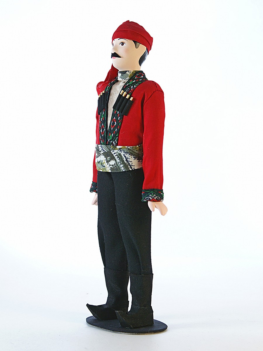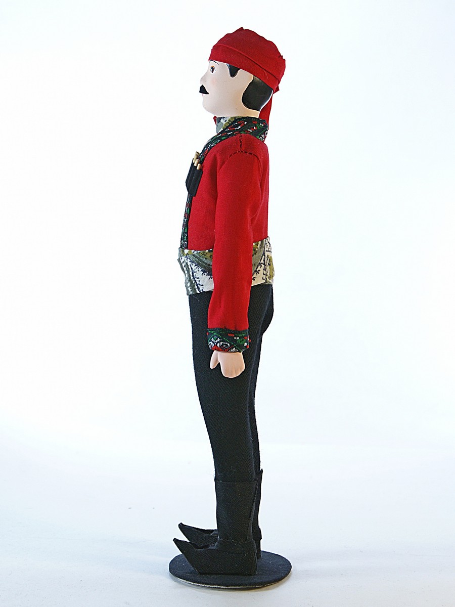 Кукла Потешного промысла Грузин. Картлийский уезд. Тифлисская губерния, конец 19-начало 20 века. Высота 26 см. Материал фарфор. текстиль. Артикул 0723.