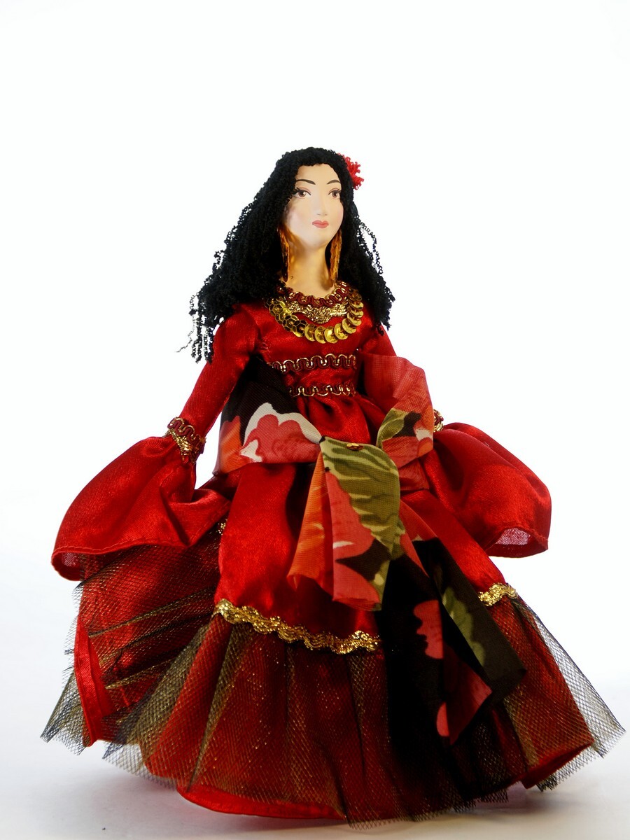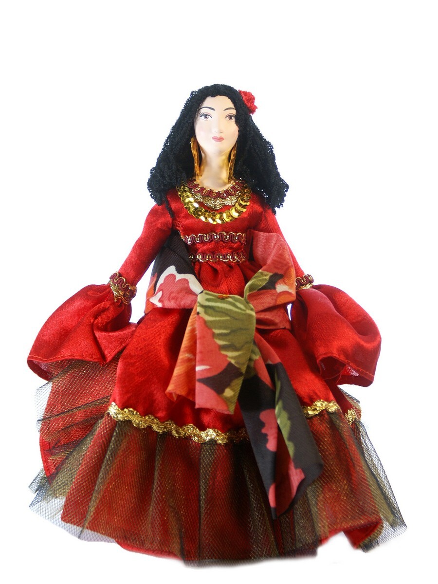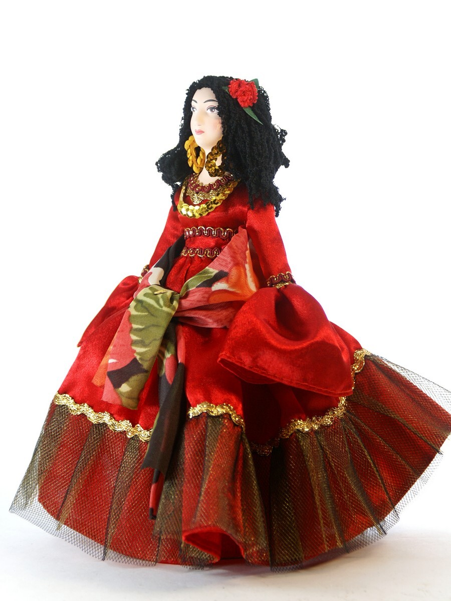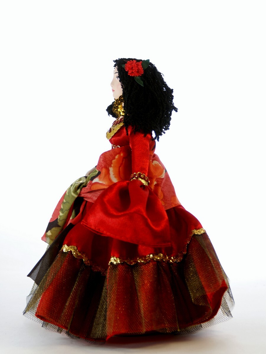 Кукла Потешного промысла Кармен. Сценический образ. 18 — 20 века. Испания, цыгане. Фарфор, текстиль. Высота 26 см. Артикул 065.
