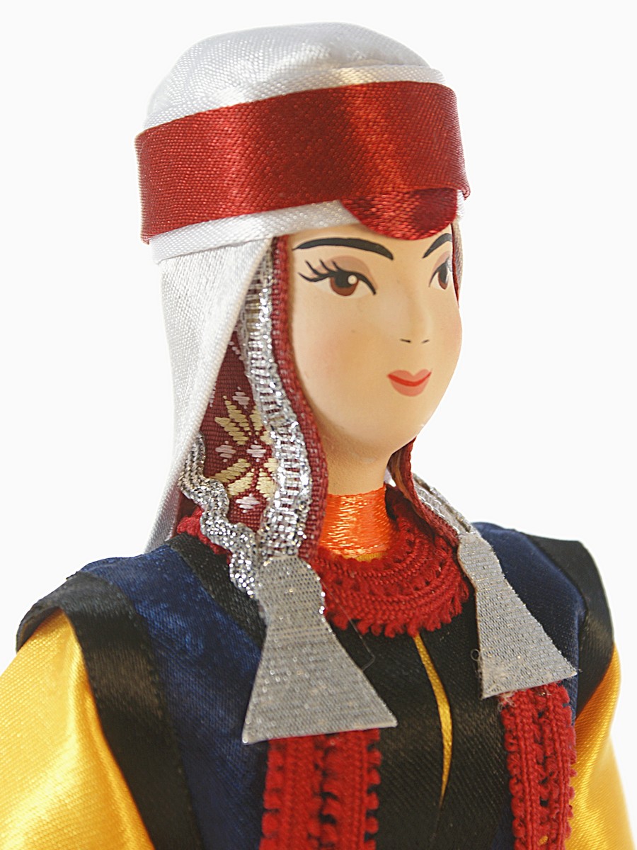 Кукла Потешного промысла Киргизка в традиционном костюме, Нарынский район.Материал фарфор, текстиль. Высота 24 см. Артикул 0071.Для подарка, украшения интерьера, в коллекцию.