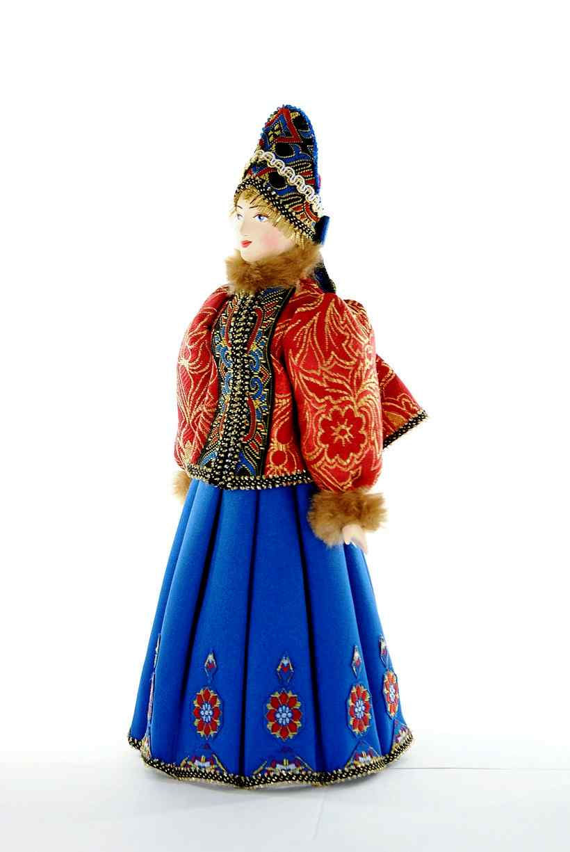 Кукла Потешного промысла интерьерная в женском зимнем костюме. Костромская губерния. Россия.Конец 19 века – начало 20 века. Материал фарфор, текстиль. Высота 28 см. Артикул 0095.