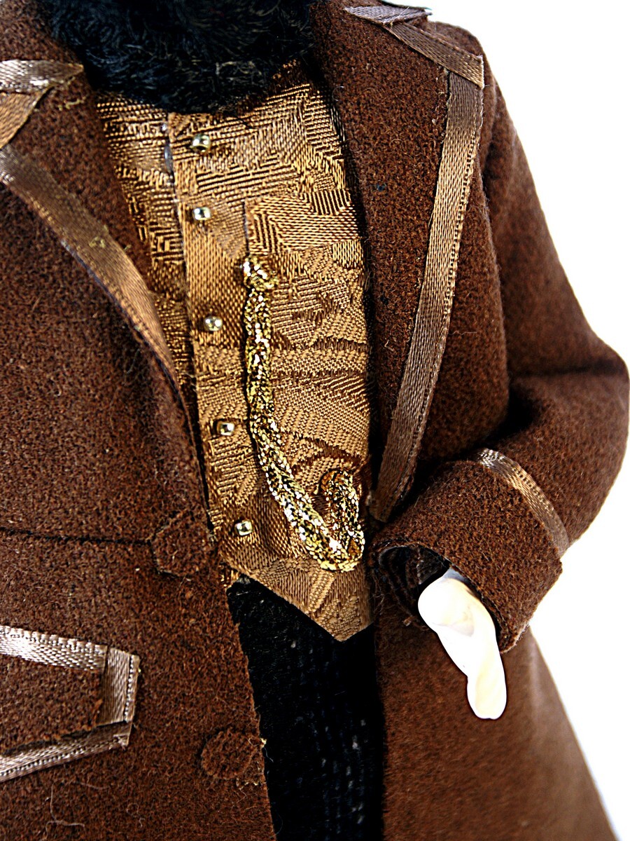 Кукла интерьерная ручной работы из коллекции Городской костюм, знать, купцы. Для подарка, для интерьера, в коллекцию. Фарфор, текстиль. Высота 27 см. Артикул 0845.