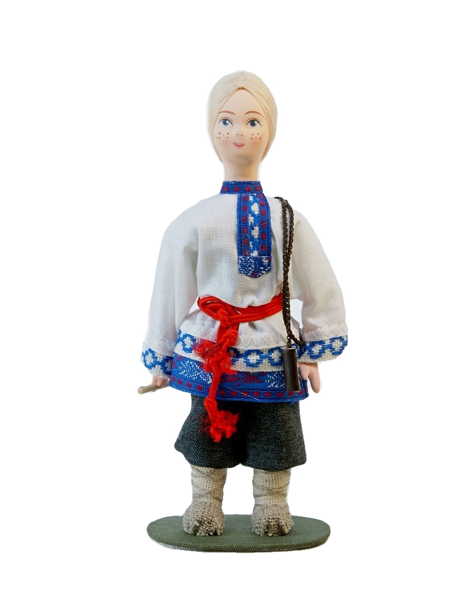 Деревенские дети. Кукла Потешного промысла мальчик-пастушок. Россия. Архангельская губерния, конец 19-начало 20 веков. Пастух. Материал фарфор, текстиль. Высота 15 см. Артикул 1098.