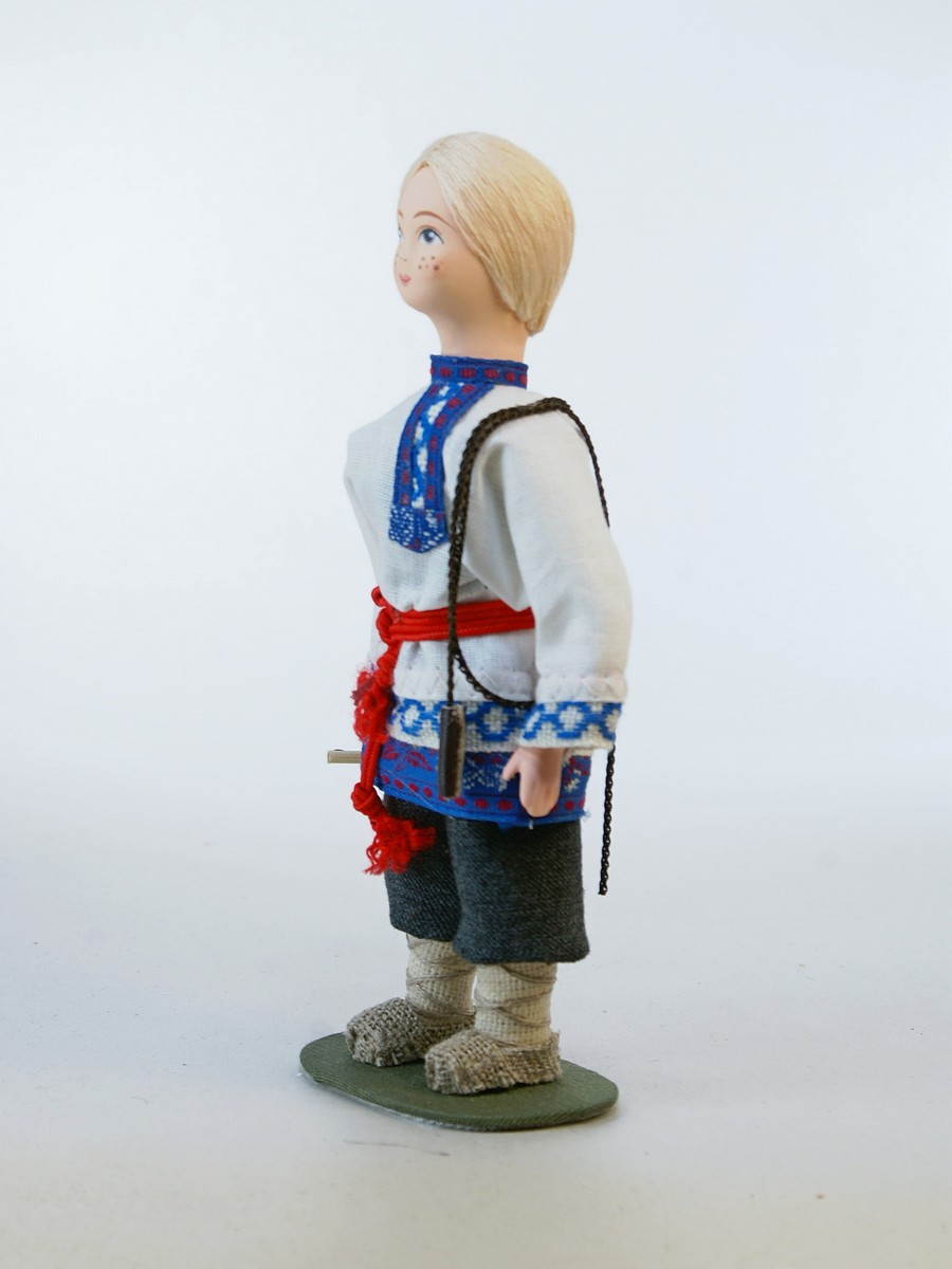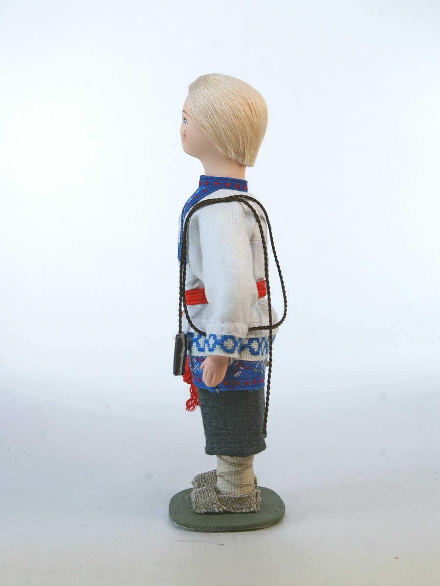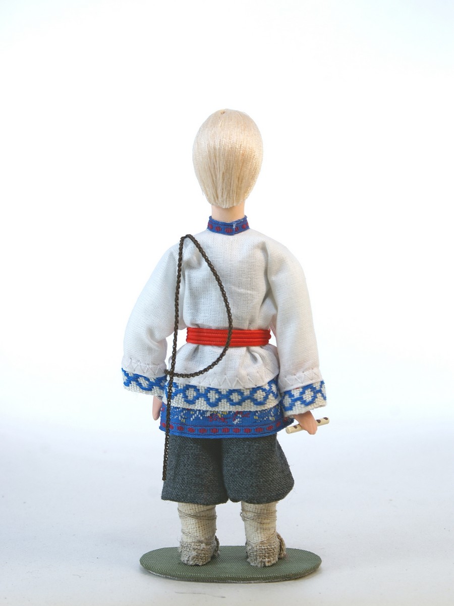 Деревенские дети. Кукла Потешного промысла мальчик-пастушок. Россия. Архангельская губерния, конец 19-начало 20 веков. Пастух. Материал фарфор, текстиль. Высота 15 см. Артикул 1098.