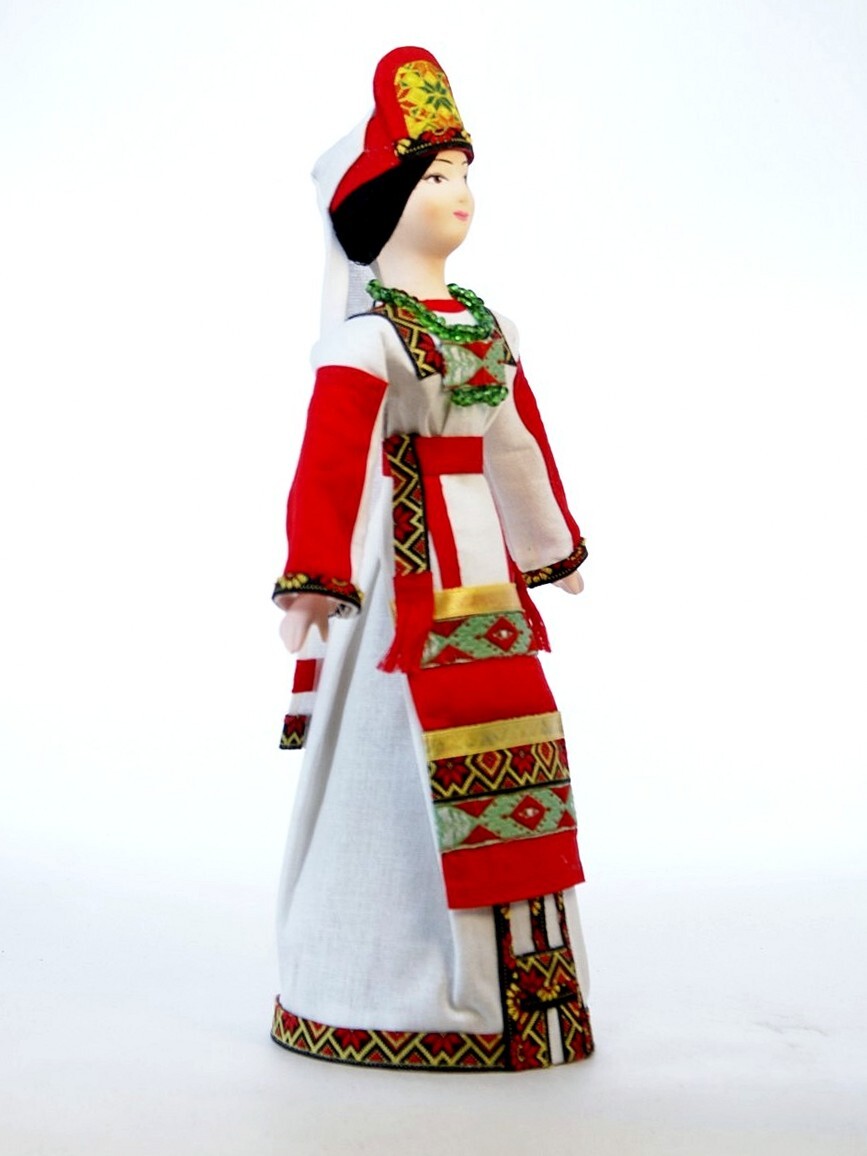 Кукла Потешного Промысла Мордовка — Эрзя. Материал фарфор, текстиль. Высота 26 см. Артикул 0904.