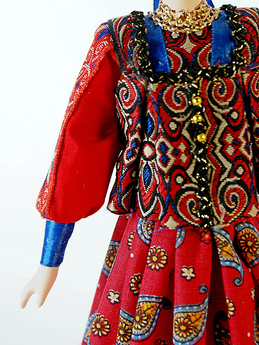 Кукла Потешного промысла девушка в костюме праздничном. Московская губерния. Красна девица. Девушка в праздничном костюме. Конец 19 века. Материал фарфор, текстиль. Высота 17 см. Артикул 0157.