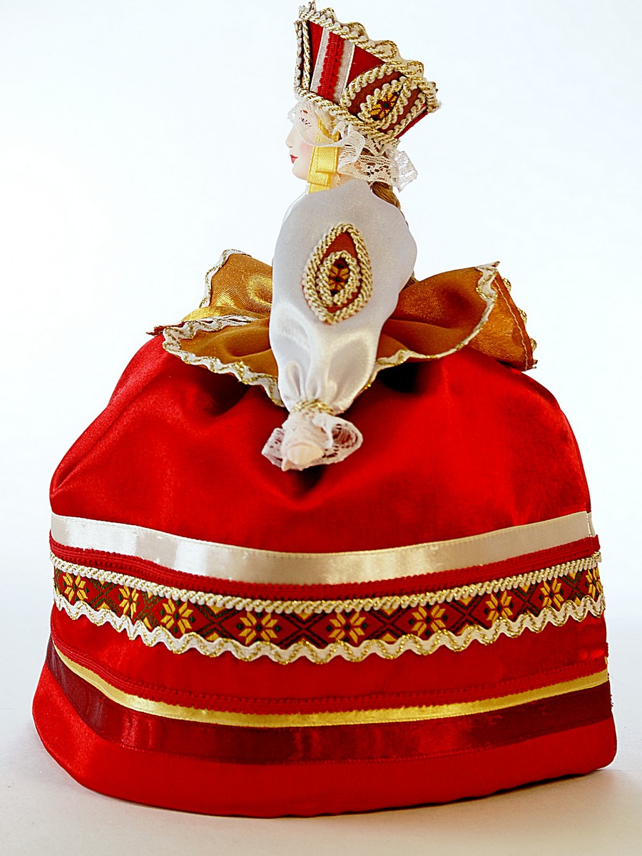 Кукла-грелка на заварочный чайник "Русская красавица в народном костюме" — это восхитительное изделие от мастеров, способное украсить ваш дом и стать жемчужиной вашей коллекции. Это коллекционная кукла представляет собой особый тип фарфоровой куклы, которая служит грелкой для чайника. Такая кукла не только функциональна, но и декоративна, что позволяет ей стать оригинальным элементом интерьера. Воплощая образ традиционной русской женщины в народном костюме, кукла хранит в себе многовековые культурные ценности и традиции. В каждой детали, от яркой расписной одежды до нежных черт лица, можно увидеть искусное мастерство и внимание к мелким деталям, присущее настоящим произведениям искусства. Это не просто фарфоровая кукла, а настоящий маленький шедевр, уникальный и неповторимый. Украшая собой чайник, такая чайница сохраняет тепло вашего напитка, даря уют и особую атмосферу каждому чаепитию. Куклы-грелки на чайник стали популярными среди коллекционеров благодаря своей уникальности и эстетической привлекательности. Их ценят за качество выполнения, а также за возможность прикоснуться к традициям и искусству. Если вы ценитель красоты и любите окружать себя изысканными предметами с историей, эта кукла станет идеальным дополнением вашей коллекции. Она идеально подходит для подарка, принося в дом тепло и частицу русской души, и, конечно же, станет настоящей находкой для любителей коллекционирования.