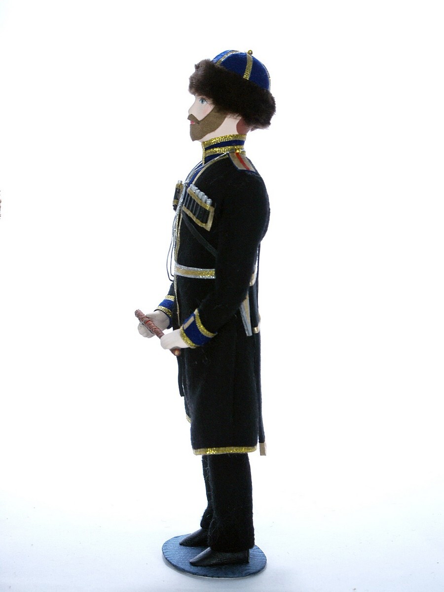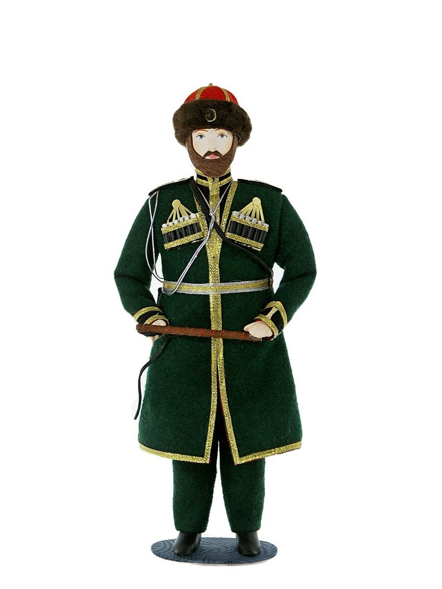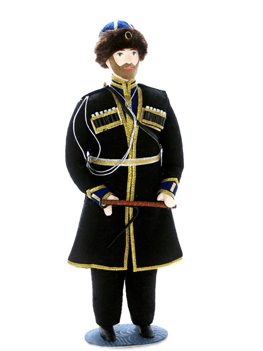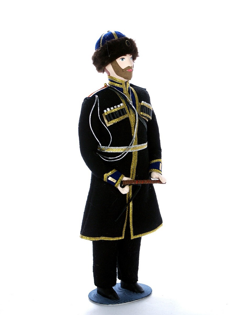 Кукла Потешного промысла “Обер-офицер конно-артиллерийской батареи в повседневной форме 1855-1870-е годы.” Казак. Кубанская казачья артиллерия. Материал фарфор, текстиль. Высота 27 см. Артикул 1763.