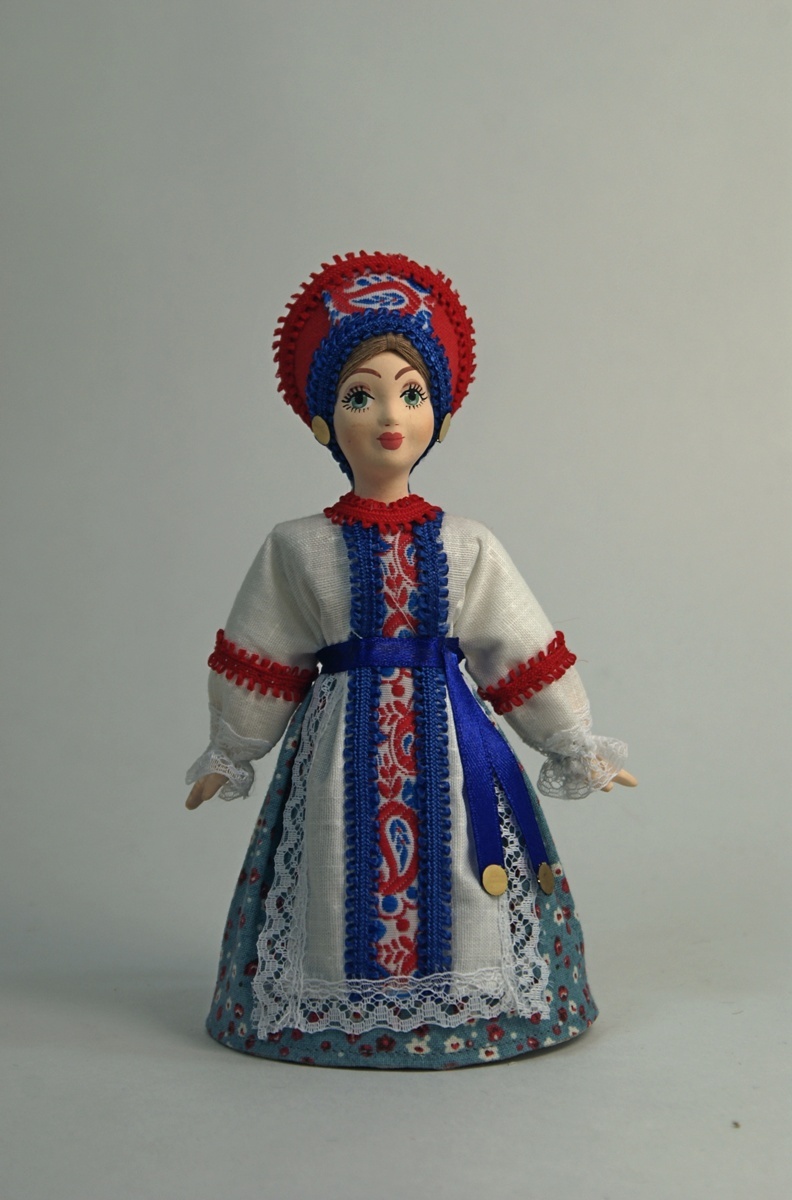 Интерьерная кукла ручной работы из коллекции Русский костюм. Для подарка, для интерьера, в коллекцию. Фарфор, текстиль. Высота 17 см.