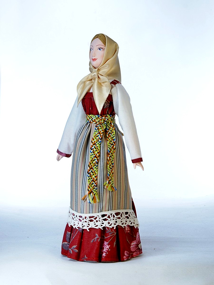 Кукла Потешного промысла в карельском национальном костюме.\n\n