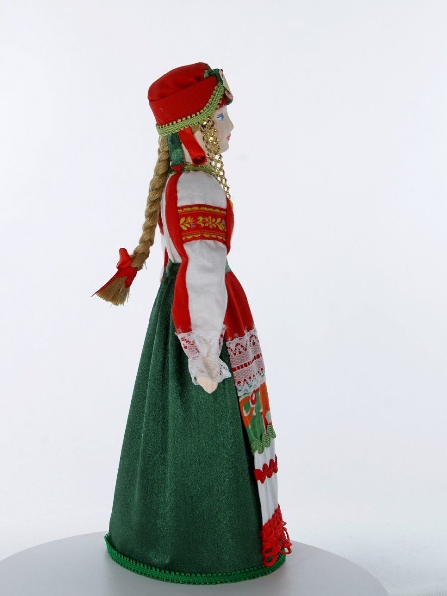 Кукла коллекционная Потешного промысла в традиционном девичьем праздничном костюме. Россия.