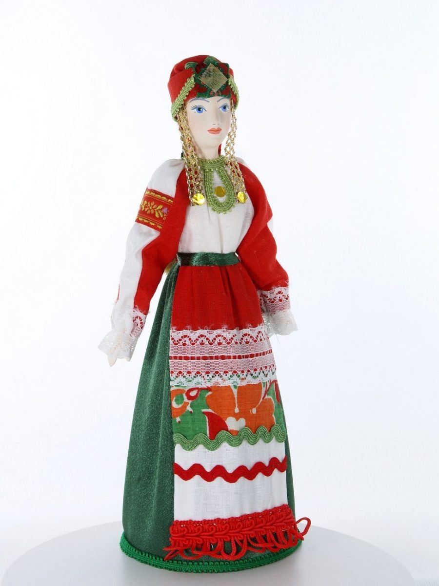 Интерьерная кукла ручной работы из коллекции Русский костюм. Для подарка, для интерьера, в коллекцию. Фарфор, текстиль. Высота 25 см.