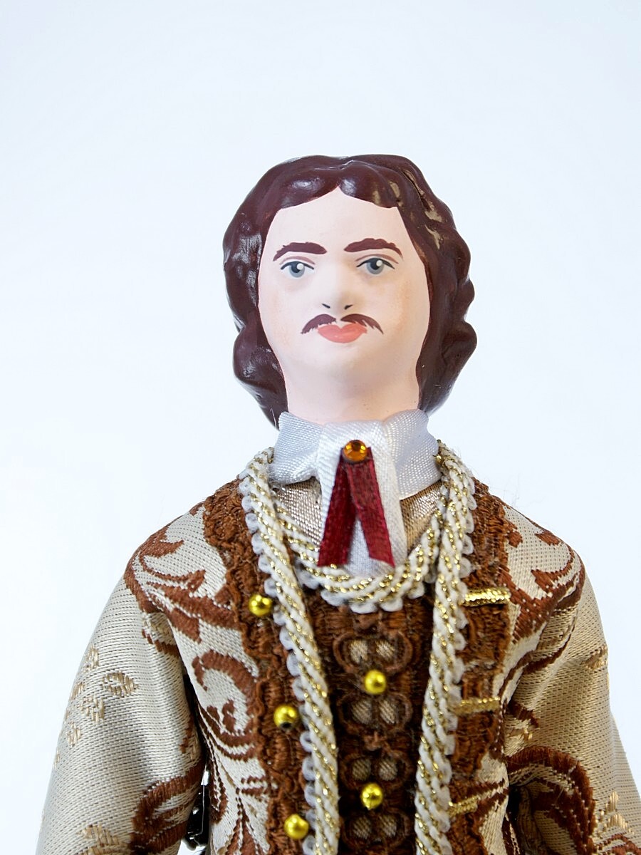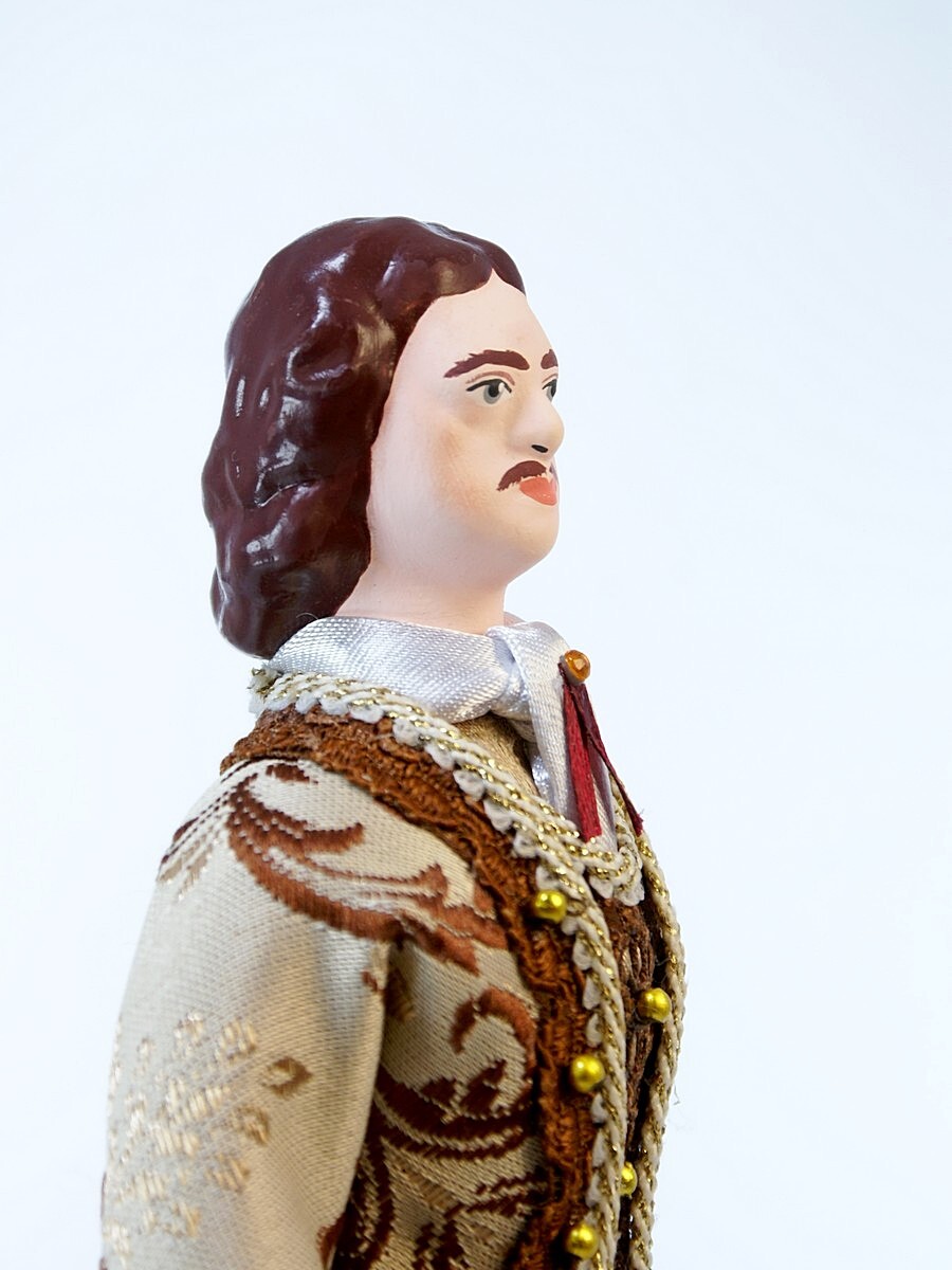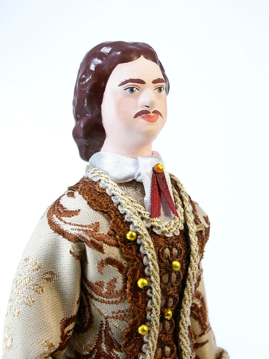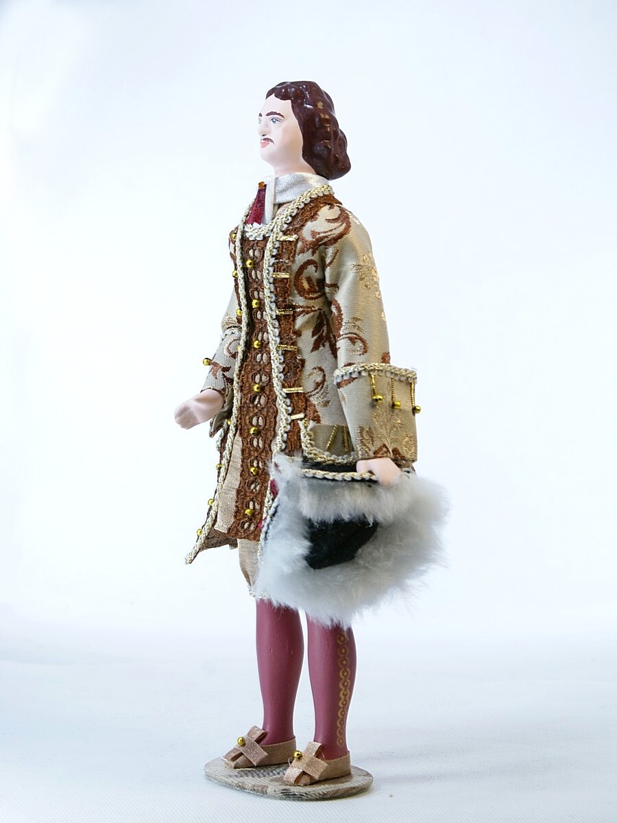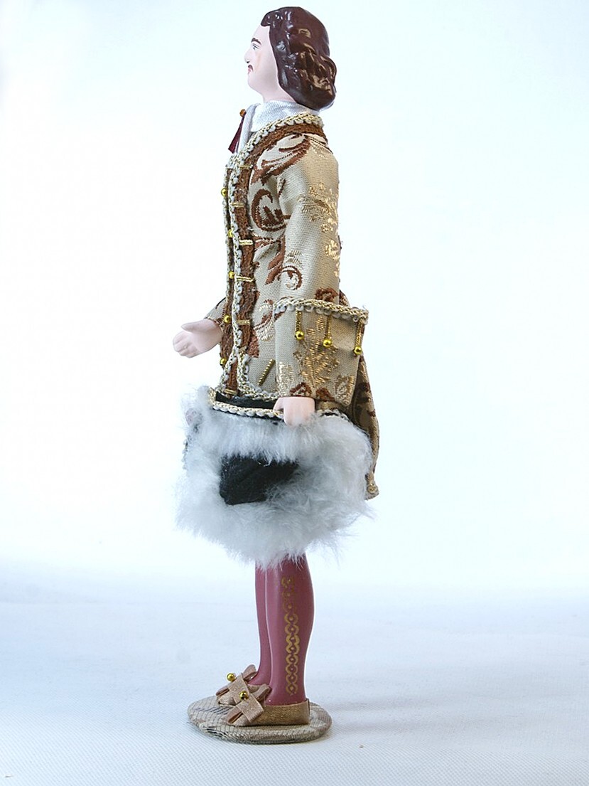 Кукла Потешного промысла Пётр Первый в бальном костюме. Материал фарфор, текстиль. Высота 25 см. Артикул 0892.