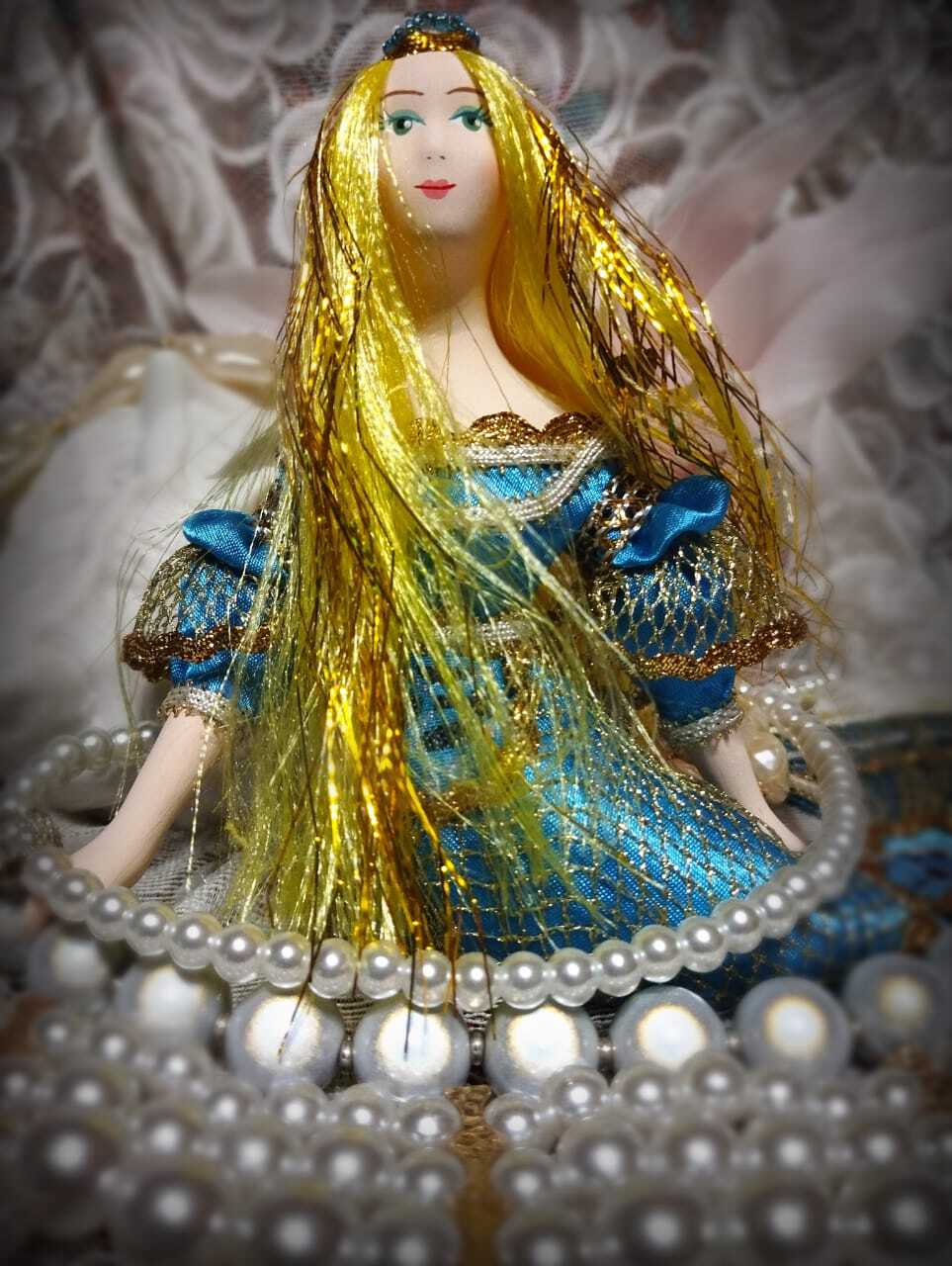Кукла фарфоровая Потешного промысла Русалочка. Сказка Х. К. Андерсена. Материал фарфор, текстиль. Высота 14 см. Артикул 0636. Тираж 10 штук.