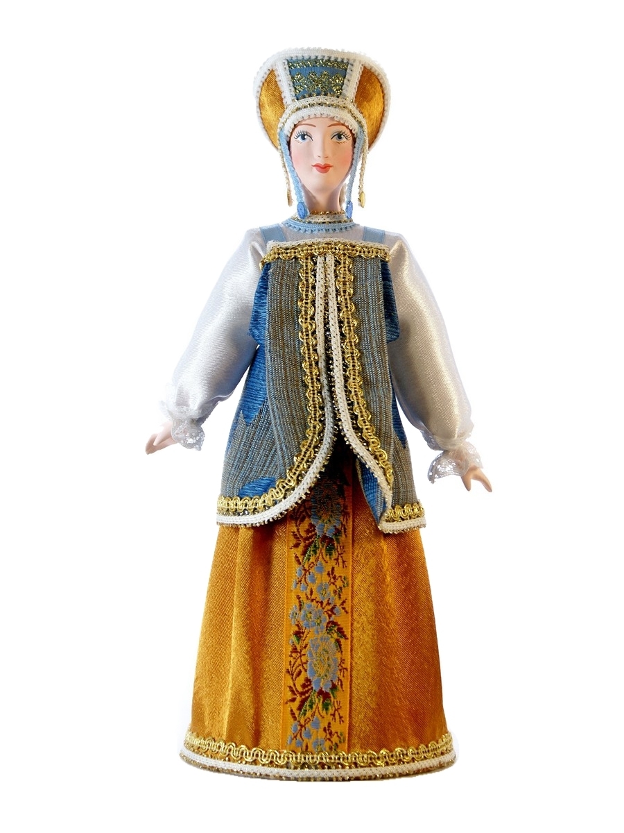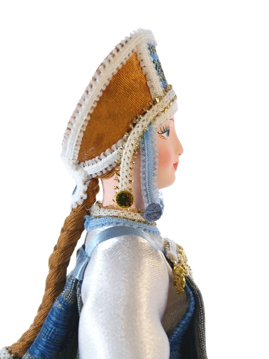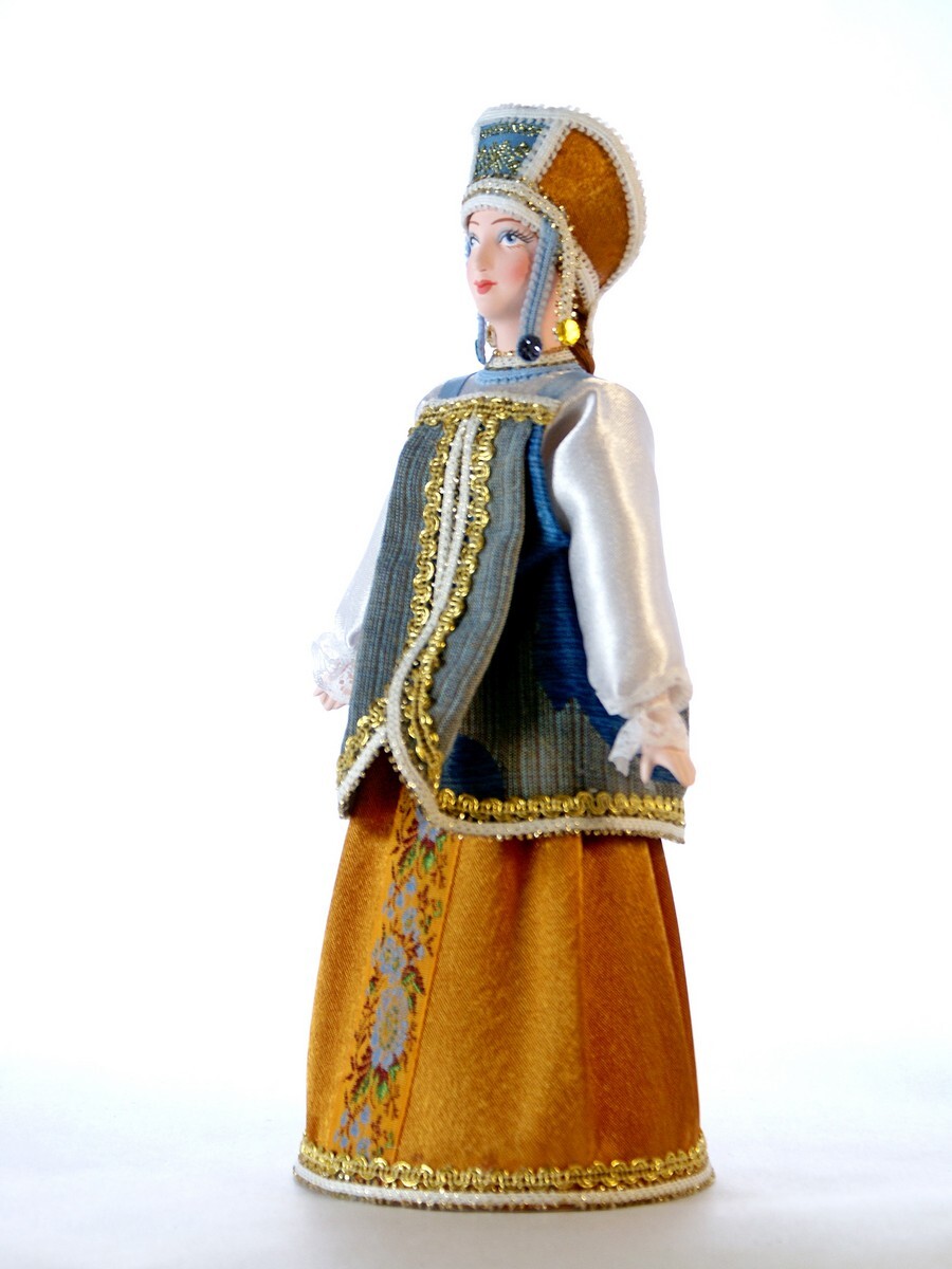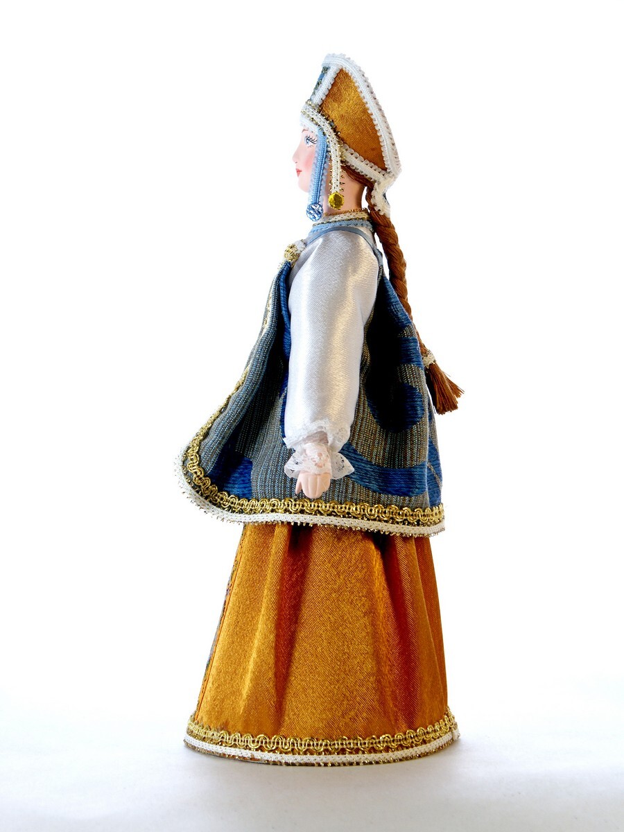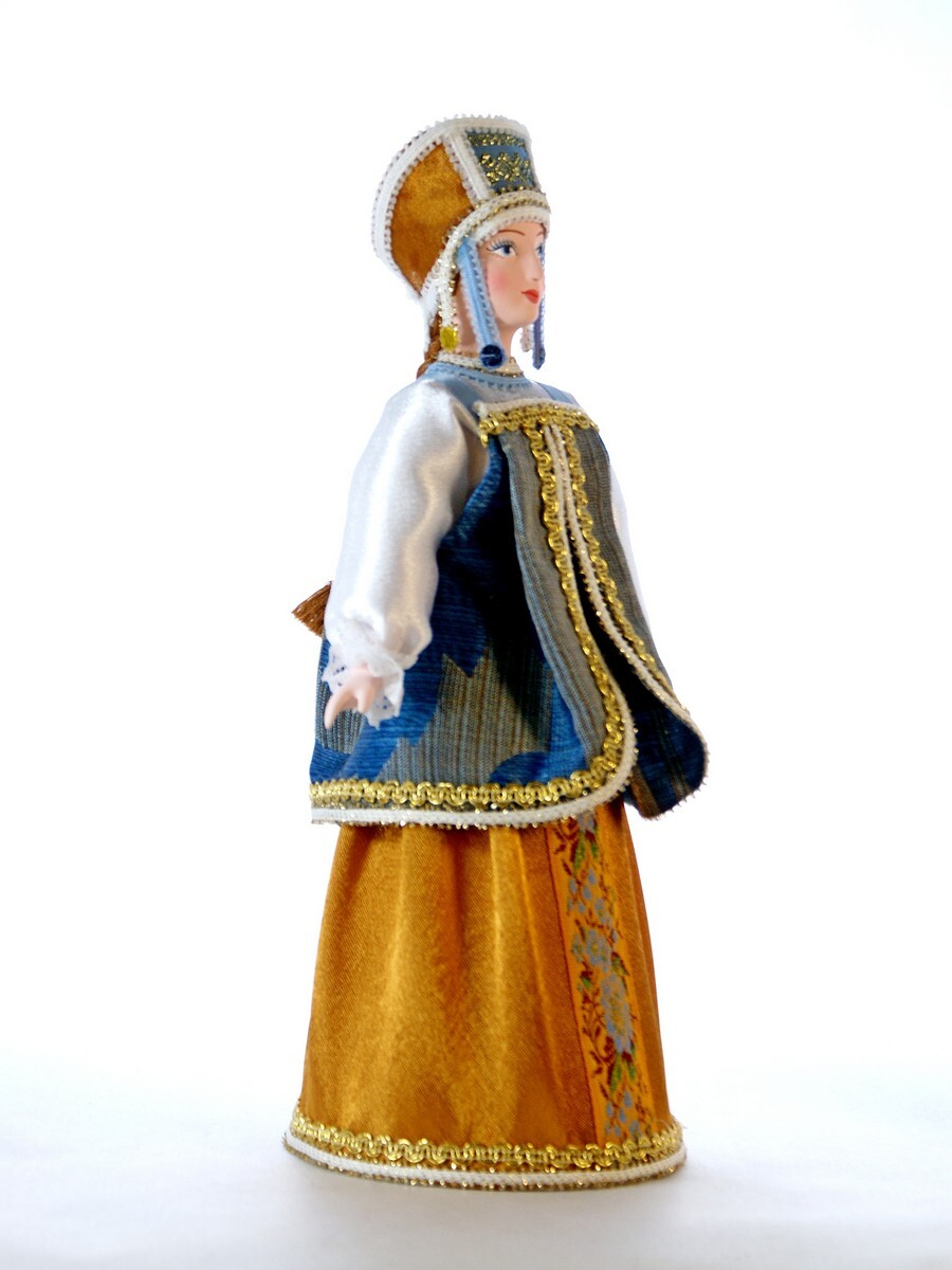 Кукла Потешного промысла в Русском костюме. Материал фарфор, текстиль. Высота 27 см. Артикул 0395.