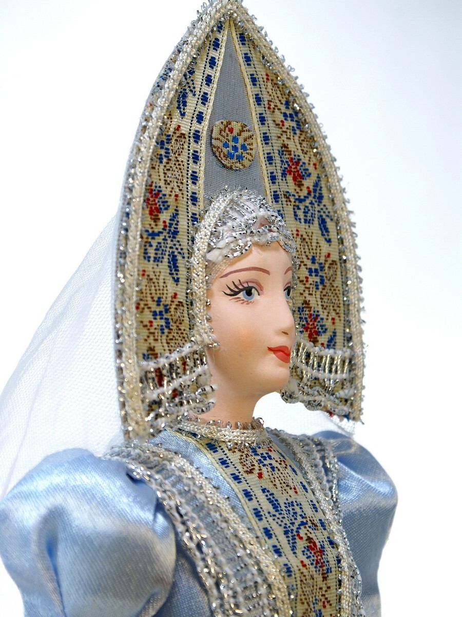 «Русская снегурочка»: нарядная фарфоровая в тканном костюме кукла из коллекции «Русский костюм» Изысканное воплощение народной красоты