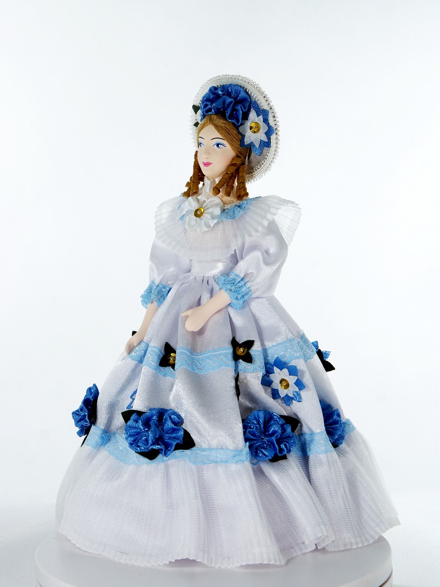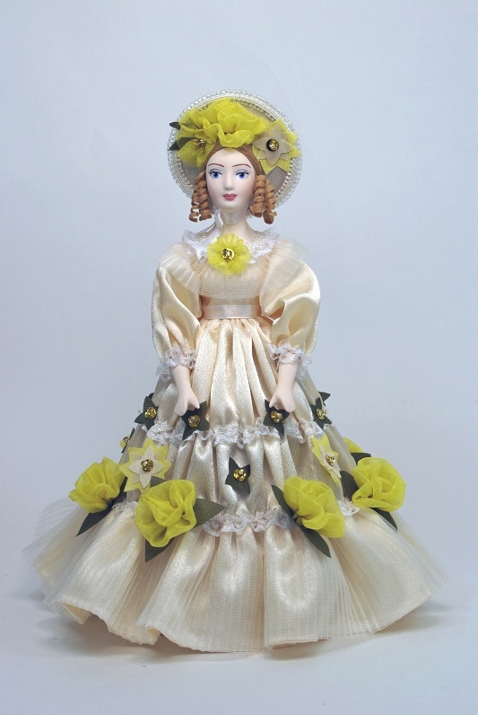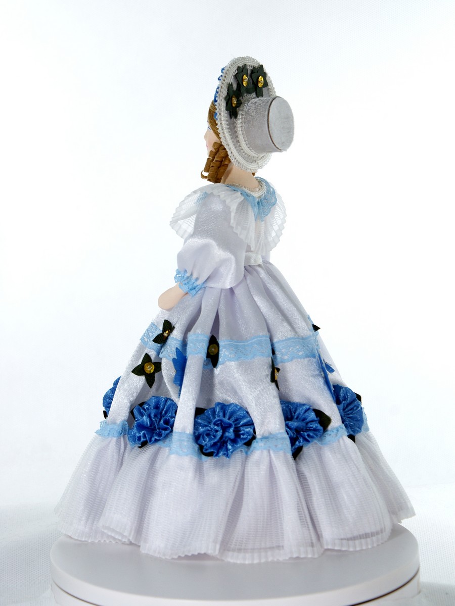 Скарлетт , Унесенные ветром (2-я пол. 19 века. США).[/caption]\n\nКукла интерьерная ручной работы из коллекции Светский исторический костюм. Для подарка, для интерьера, в коллекцию. Фарфор, текстиль. Высота 27 см.\n\n\n\n