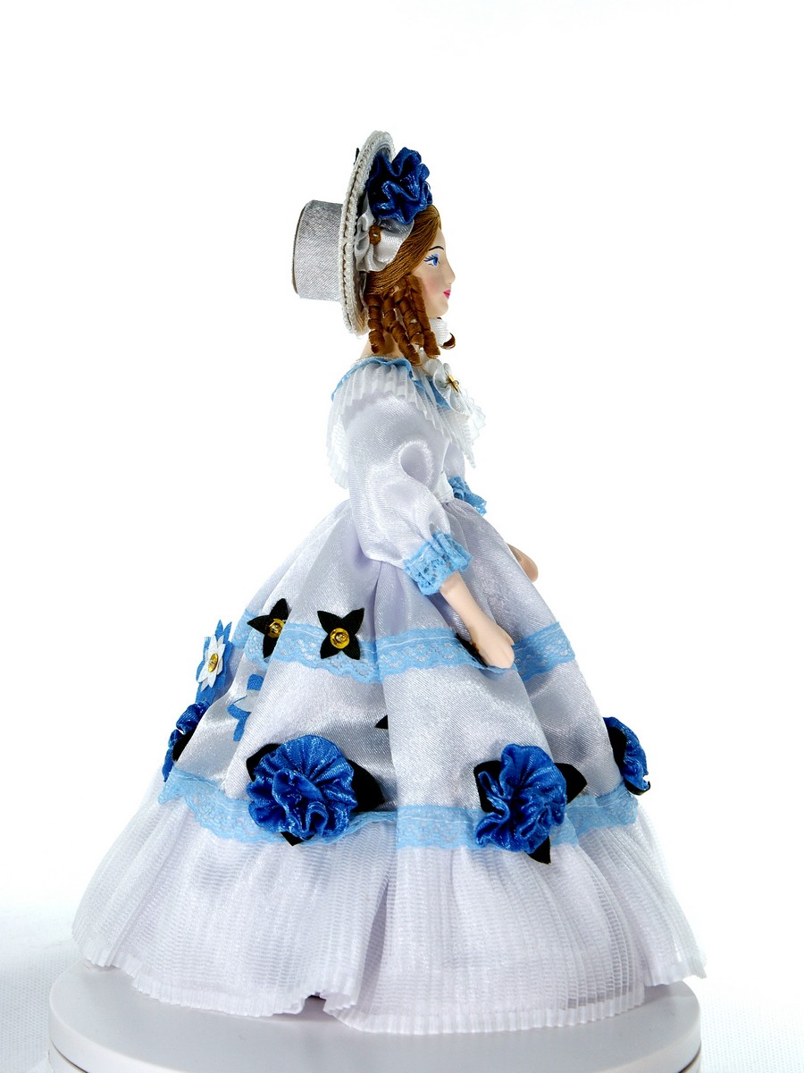 Скарлетт , Унесенные ветром (2-я пол. 19 века. США).[/caption]\n\nКукла интерьерная ручной работы из коллекции Светский исторический костюм. Для подарка, для интерьера, в коллекцию. Фарфор, текстиль. Высота 27 см.\n\n