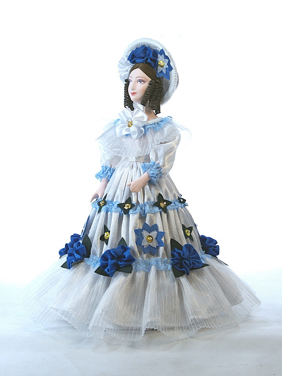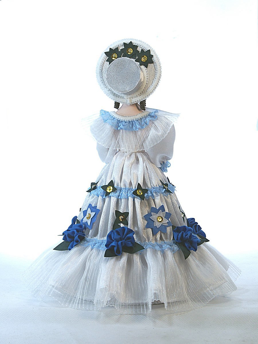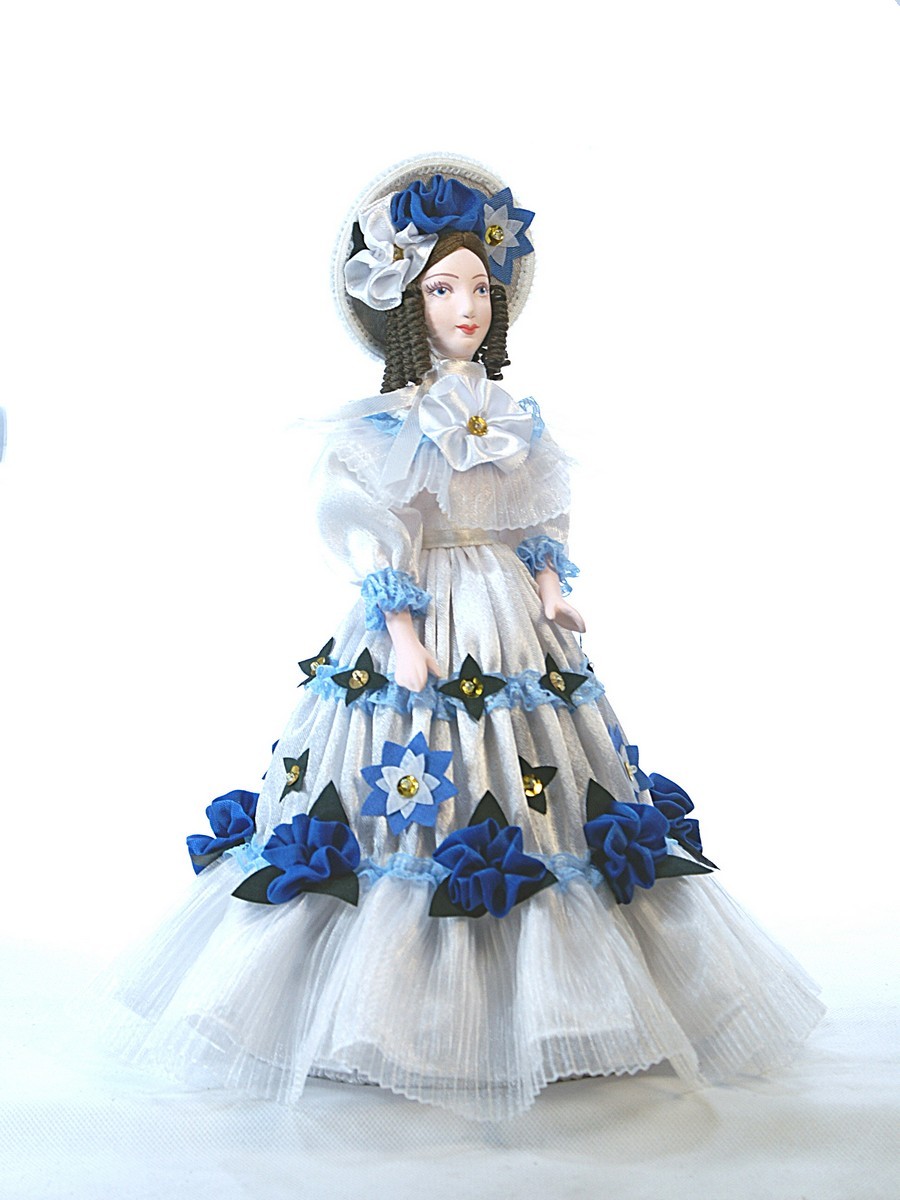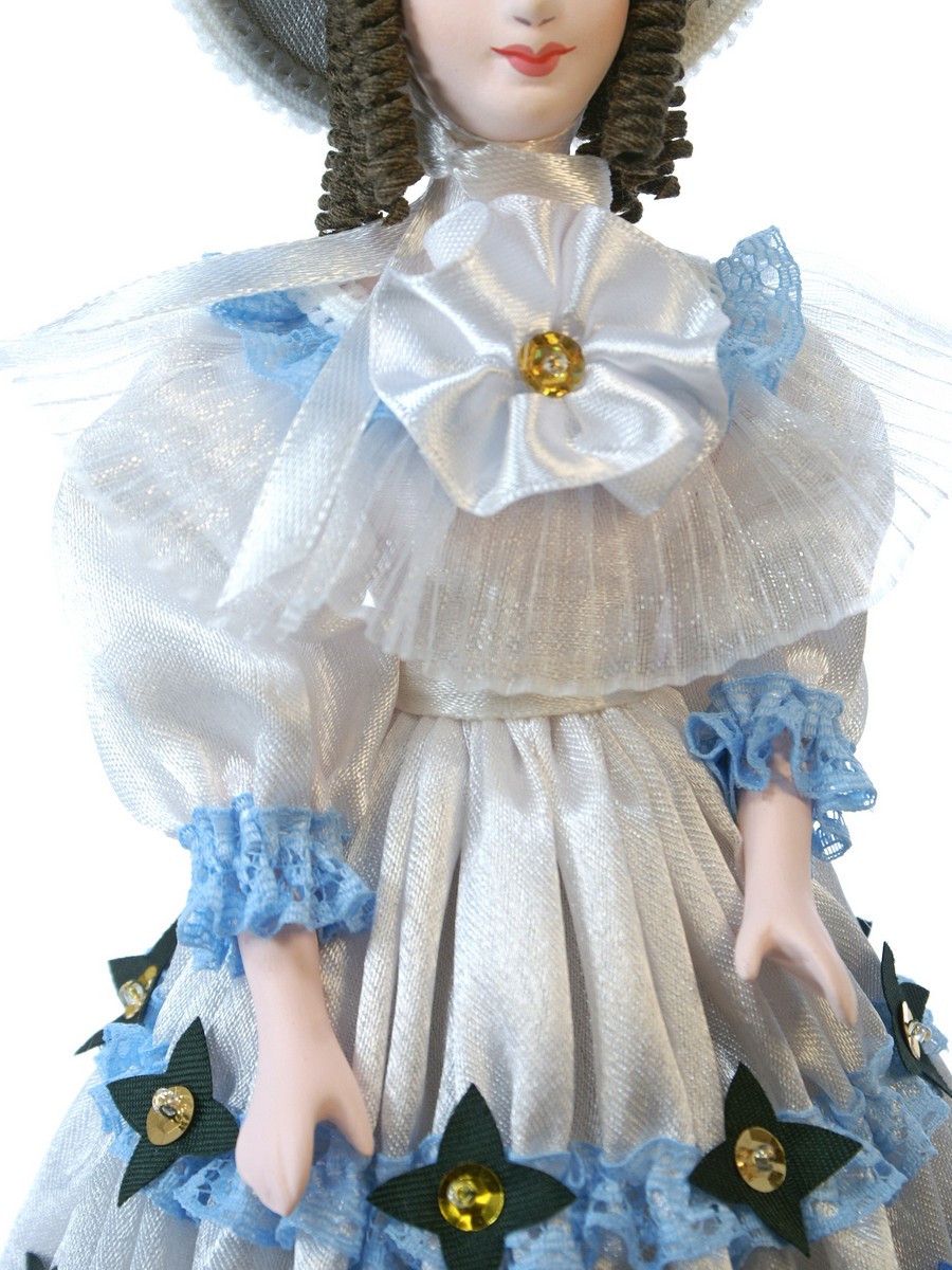 Кукла Потешного промыслы дама в летнем платье 19 века. Материал фарфор, текстиль. Высота 38 см. Артикул 0014.\n\n
