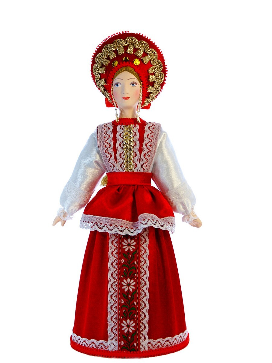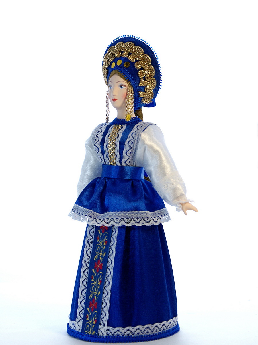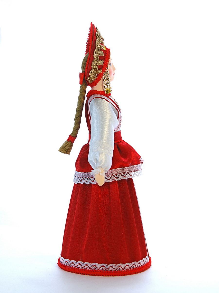 Кукла Потешного промысла в Девичьем летнем костюме. Начало 20 века. Россия. Материал фарфор, текстиль. Высота 27 см. Артикул 0380.