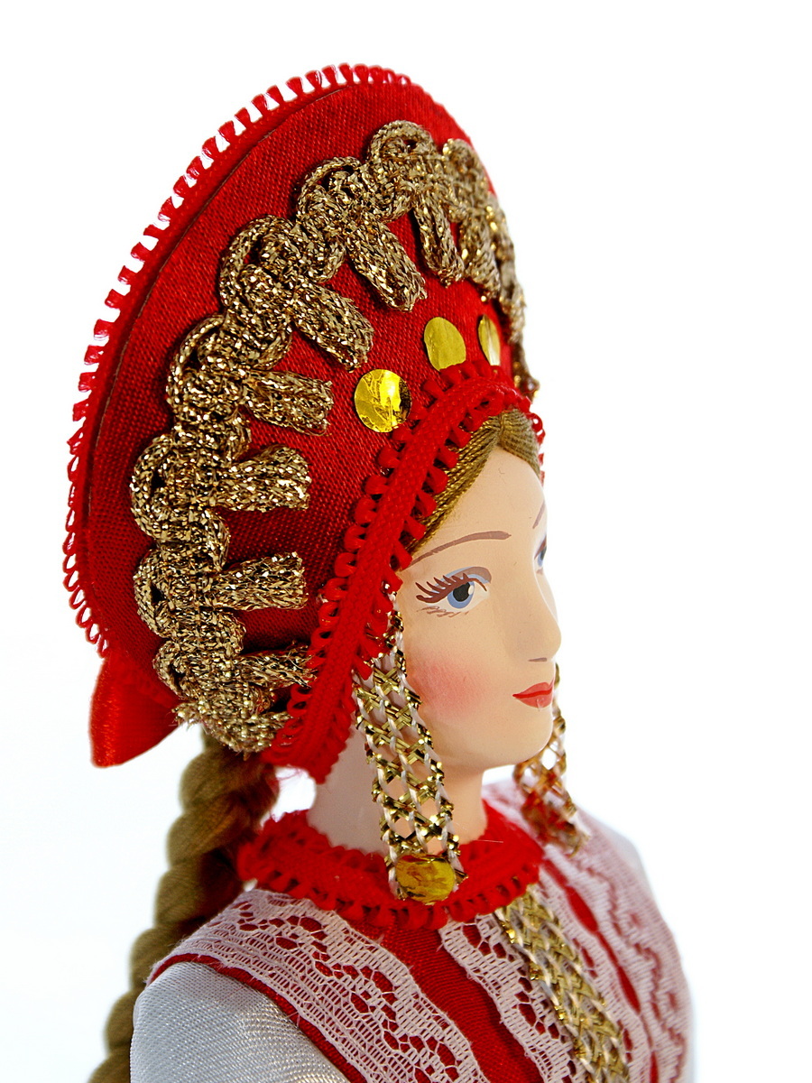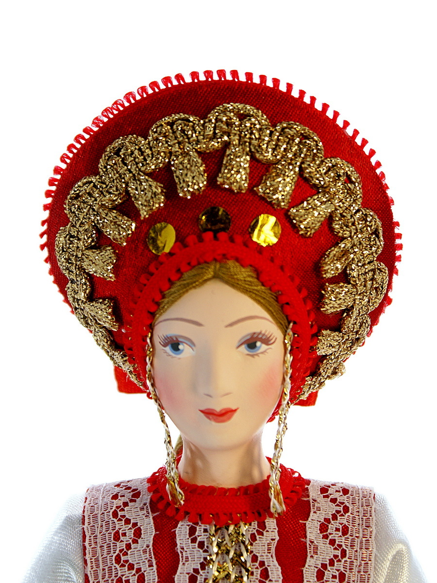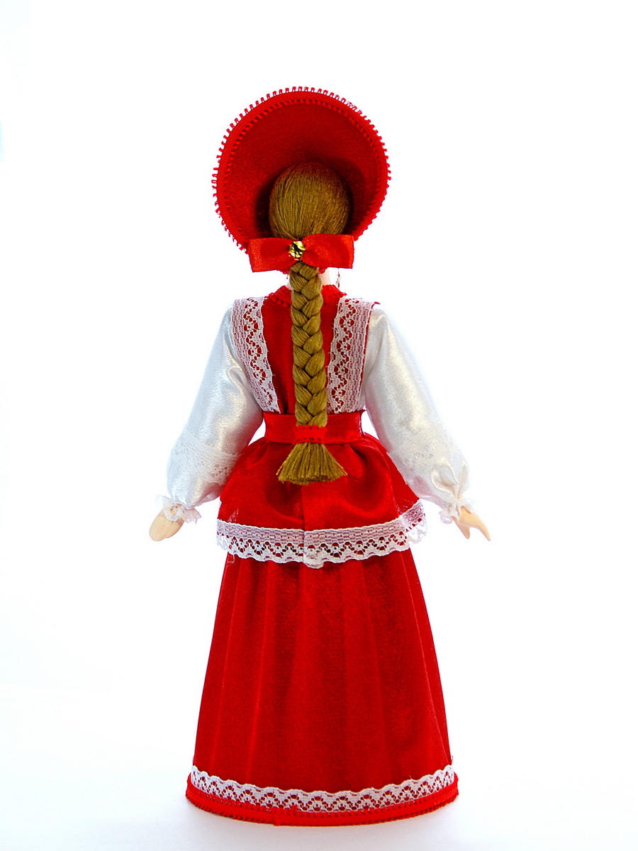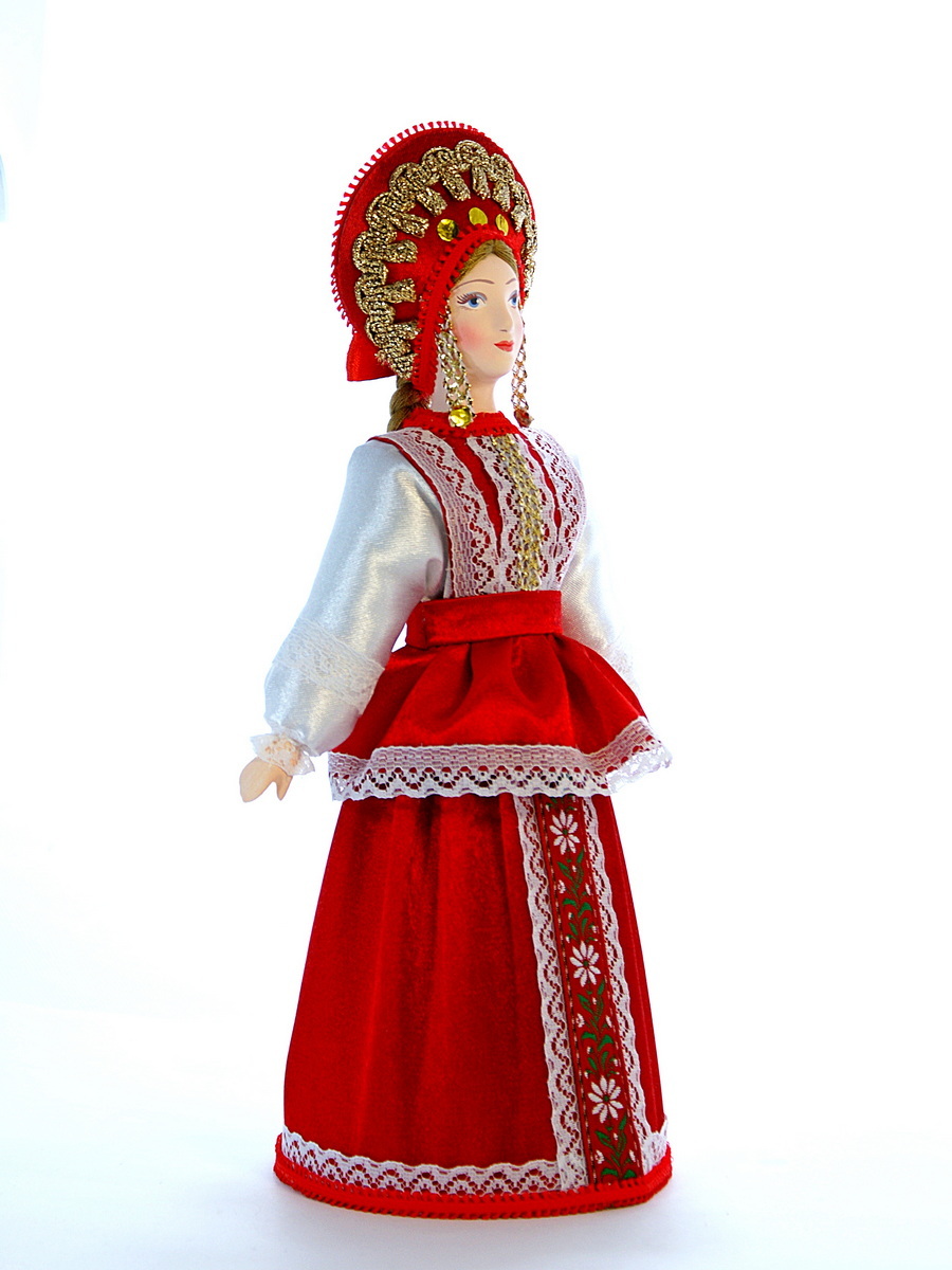 Кукла Потешного промысла в Девичьем летнем костюме. Начало 20 века. Россия. Материал фарфор, текстиль. Высота 27 см. Артикул 0380.