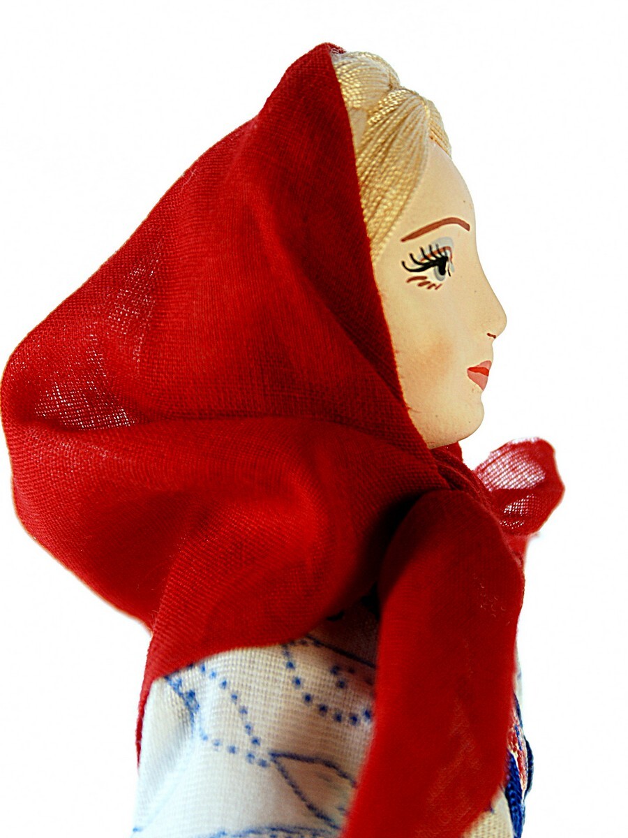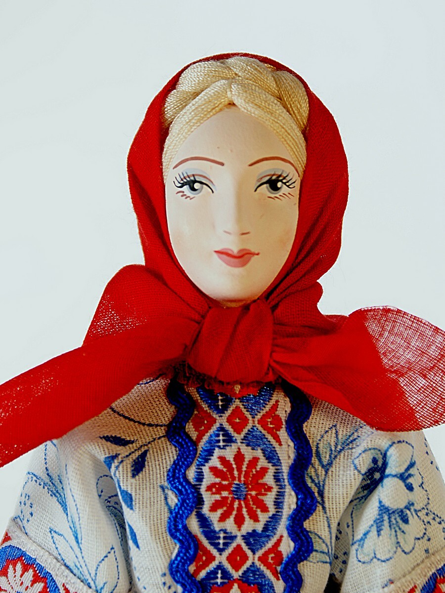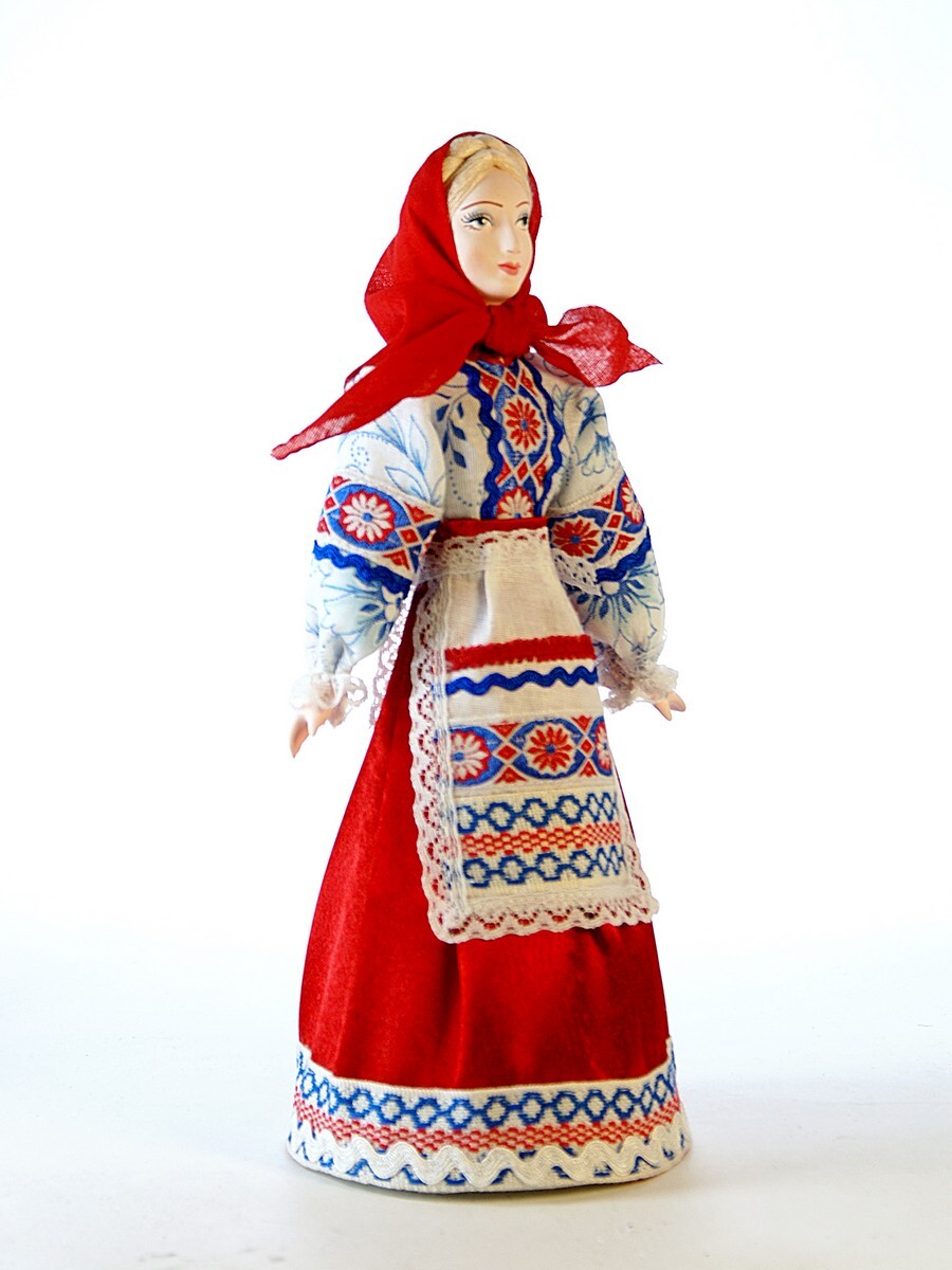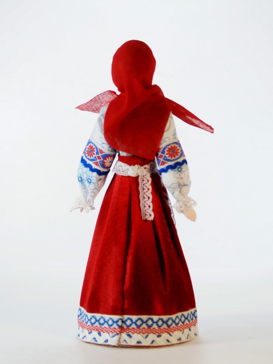 Кукла Потешного промысла в девичьем мещанском костюме. Россия. Материал фарфор, текстиль. Высота 25 см. Артикул 0449.