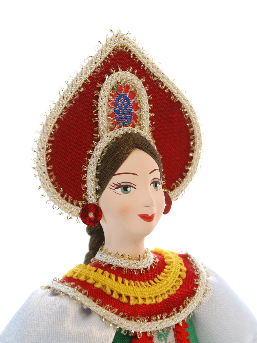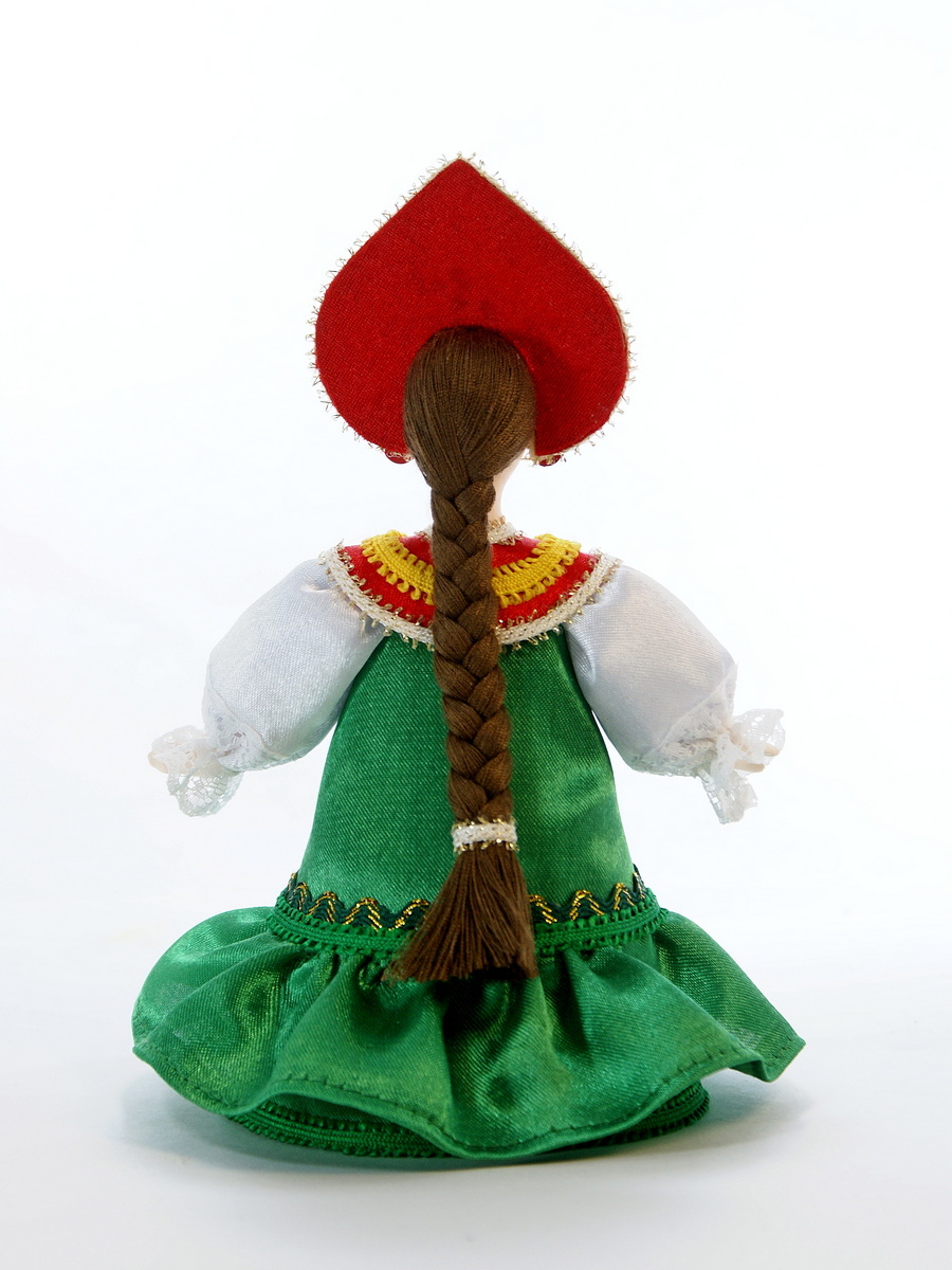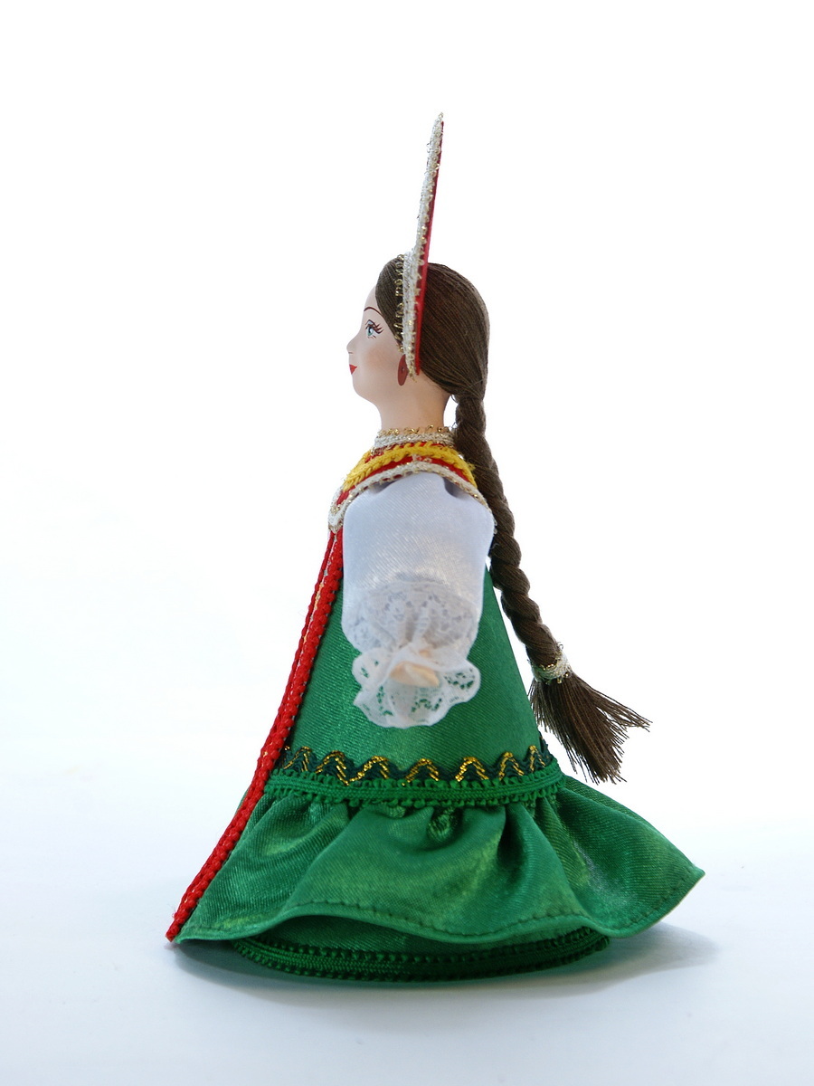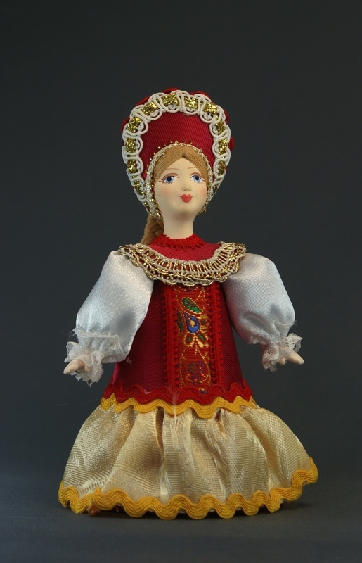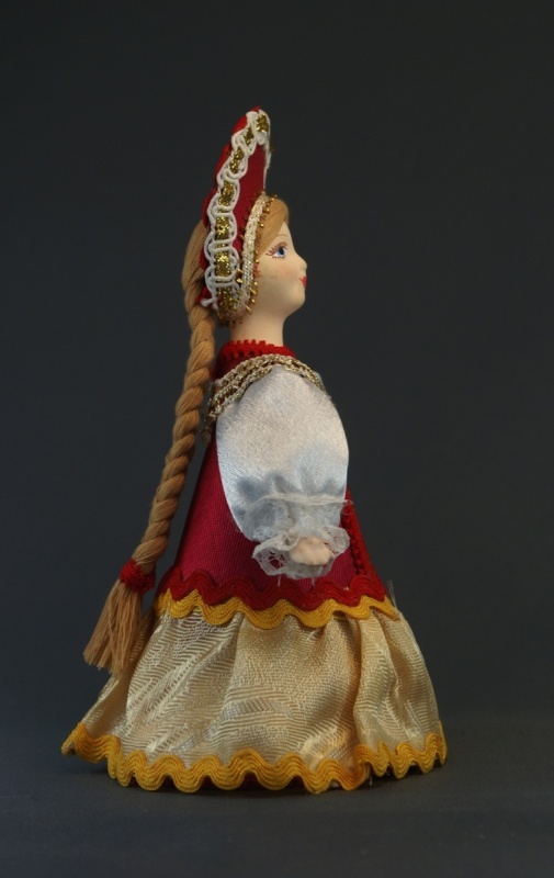 Кукла Потешного промысла в Девичьем праздничном костюме. Владимирская губ. Россия. Конец 19-начало 20 века. Материал фарфор, текстиль. Высота 19 см. Артикул 0270.
