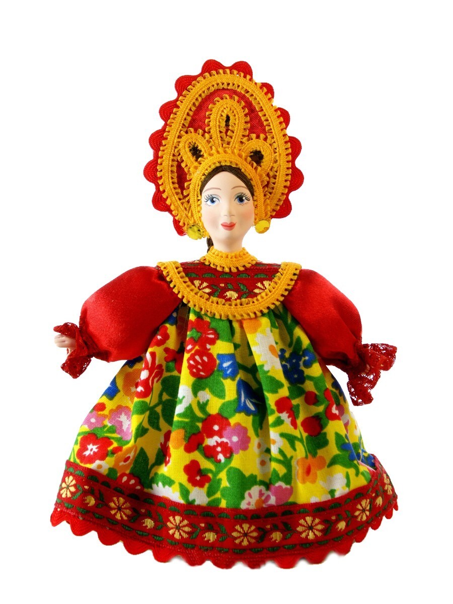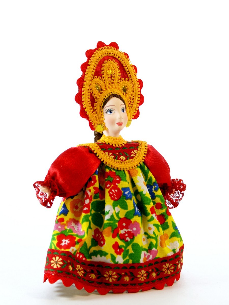 Кукла Потешного промысла в девичьем праздничном костюме. Россия. Конец 19-начало 20 века. Материал фарфор, текстиль. Высота 16 см. Артикул 0385.