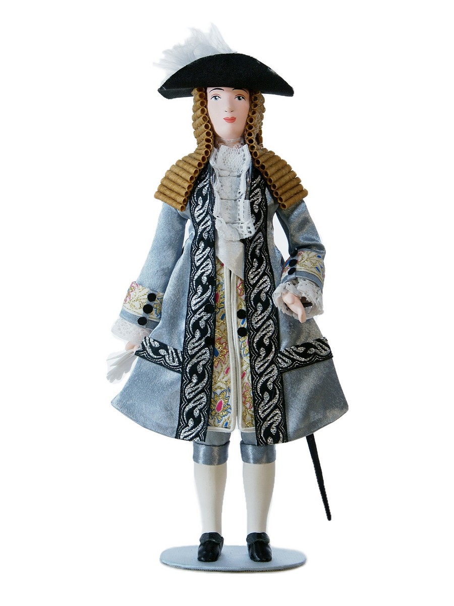 Кукла коллекционная в мужском придворном Французском костюме 18 века - золотистый-манжет