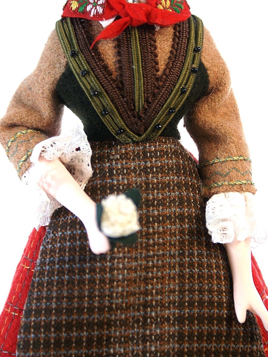 Кукла Потешного промысла в национальном женском костюме 19 века. Датчане. Дания. Материал фарфор, текстиль. Высота 26 см. Артикул 1752.