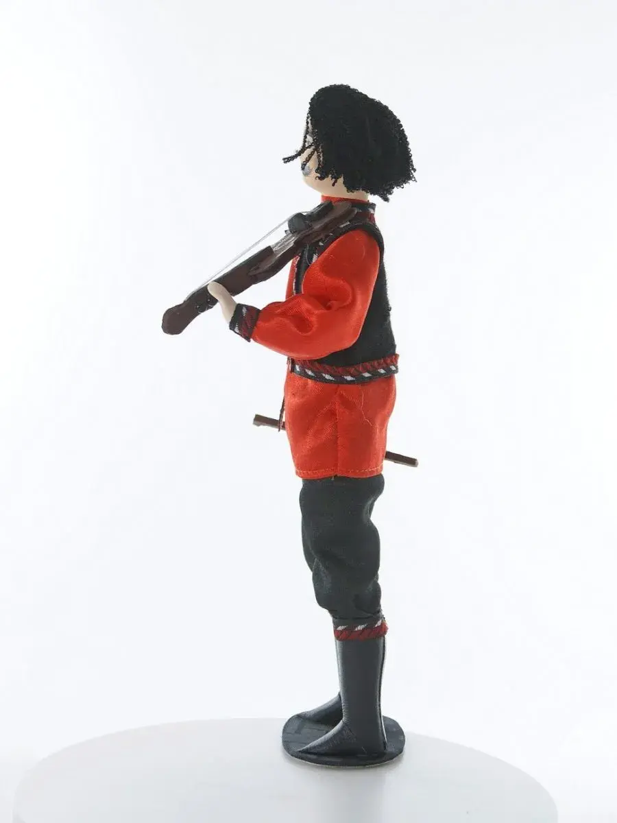 Кукла создана профессиональным художником-кукольником из качественного, безопасного материала. Голова, торс и руки выполнены из фарфора в собственной керамической мастерской, расписаны акриловыми/темперными красками, в основании - конус из плотного картона, обтянутый тканью.
