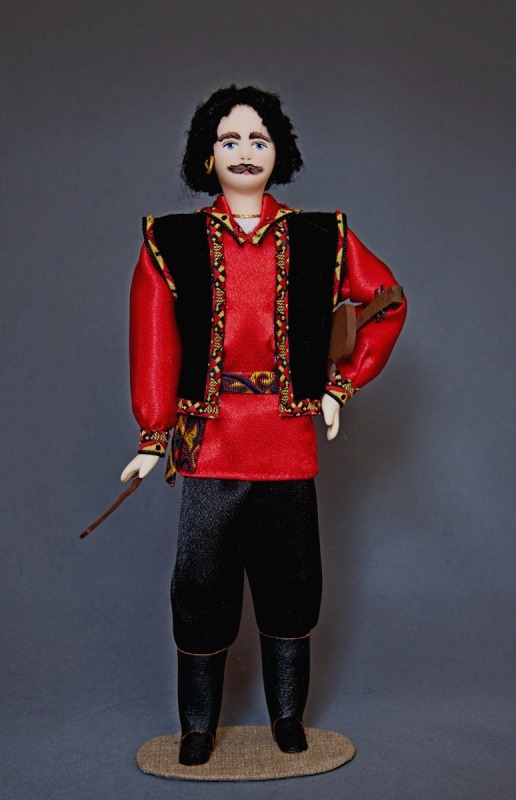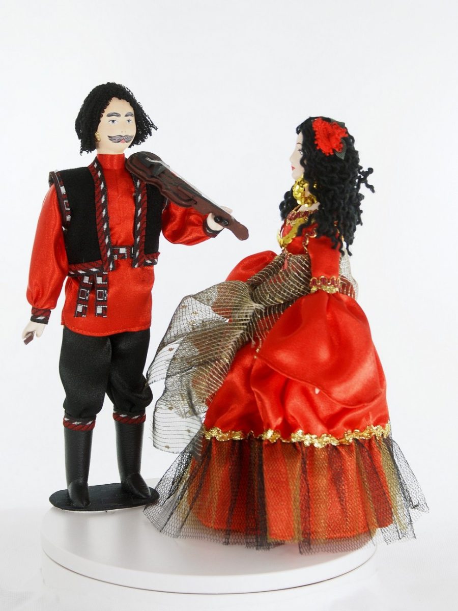 Интерьерная кукла ручной работы из коллекции Народы России. 30-40 г. 19 в. Бессарабия. Цыгане. Для подарка, для интерьера, в коллекцию. Фарфор, текстиль. Высота 26 см.
