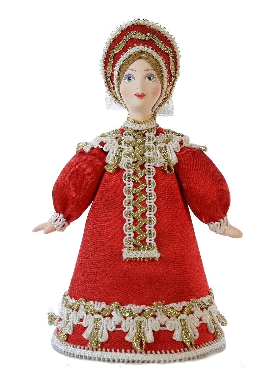 Кукла Потешного промысла в девичьем праздничном костюме. Архангельская обл. Россия. Материал фарфор, текстиль. Высота 18 см. Артикул 0325.