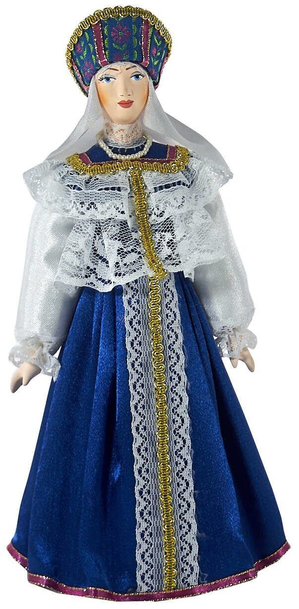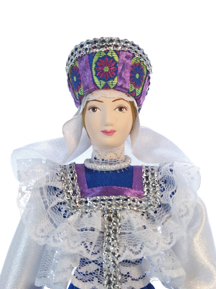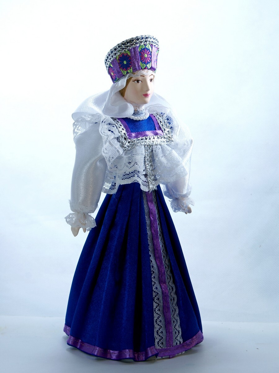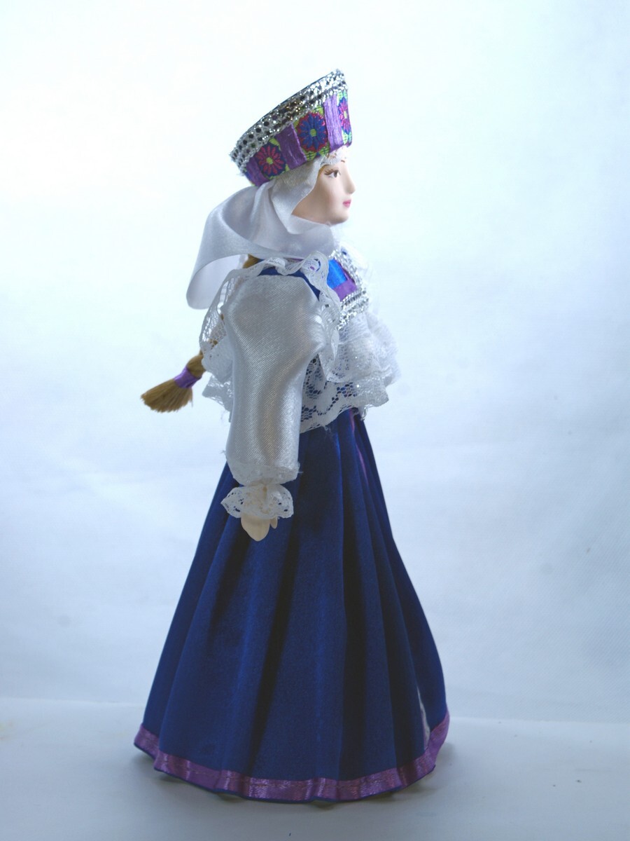 Кукла Потешного промысла в Свадебном женском костюме. Вологодская губ. Россия. Конец 19-начало 20 века. Материал фарфор, текстиль. Высота 27 см. Артикул 0355.