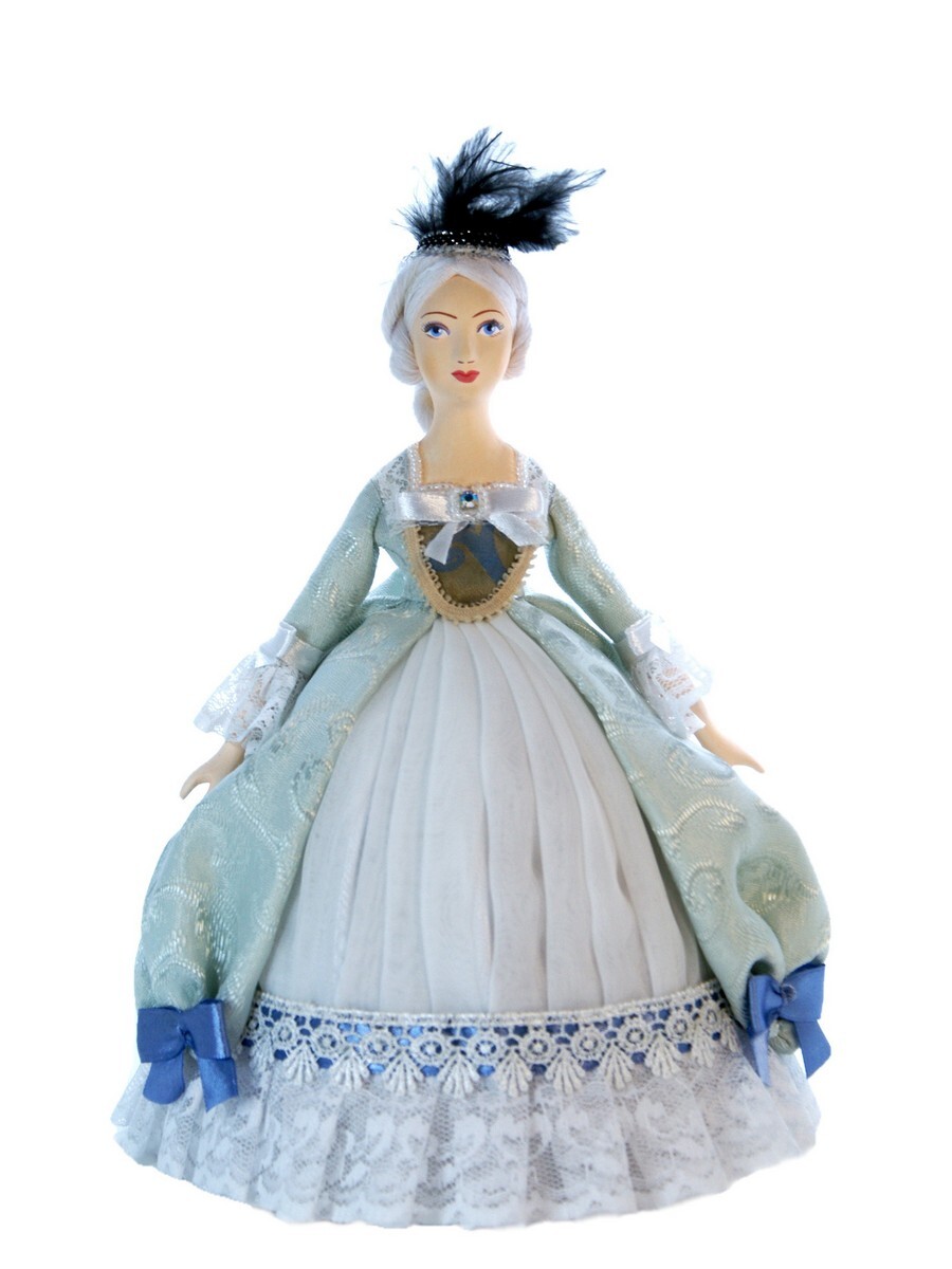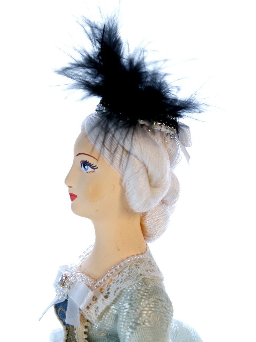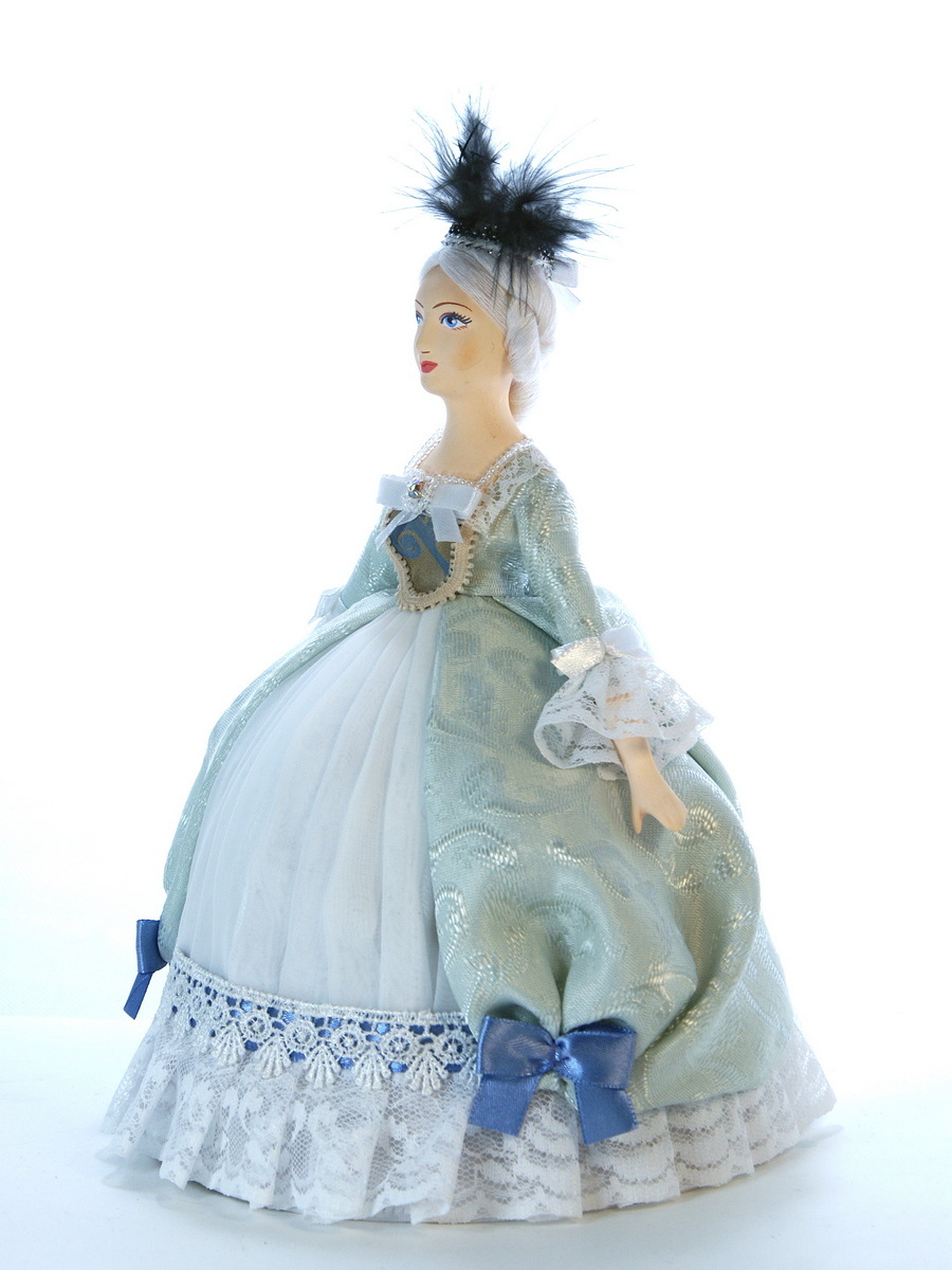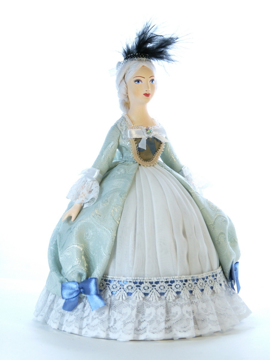 Кукла Потешного промысла в женском придворном костюме середины 18 века. Франция. Высота 26 см. Материал фарфор, текстиль. Артикул 1247.