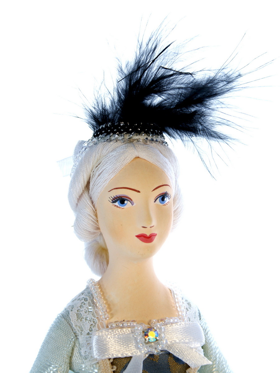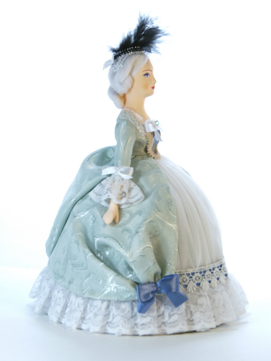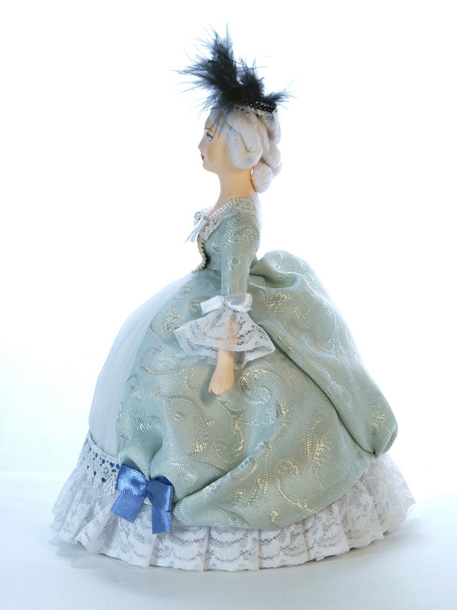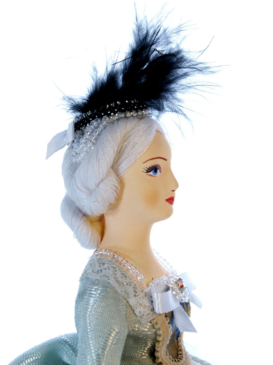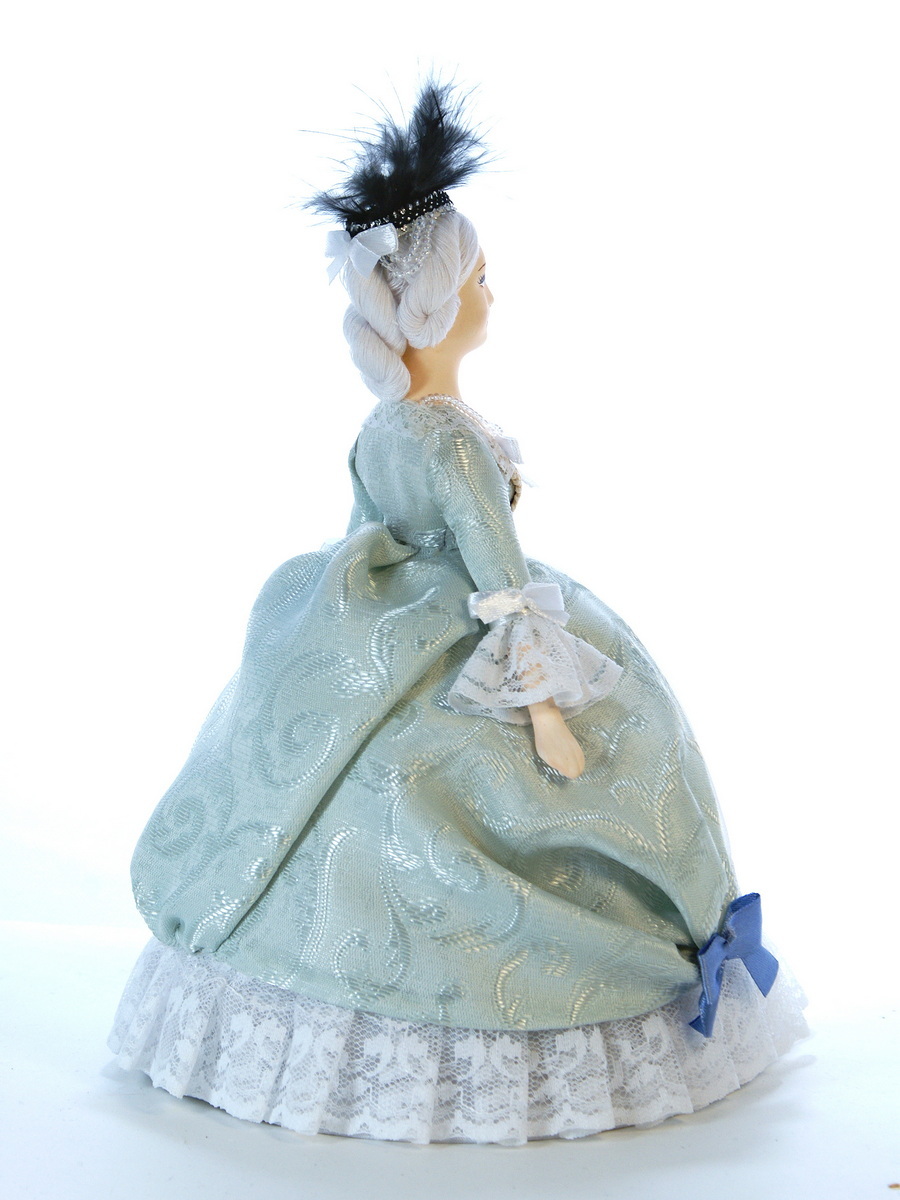 Кукла Потешного промысла в женском придворном костюме середины 18 века. Франция. Высота 26 см. Материал фарфор, текстиль. Артикул 1247.