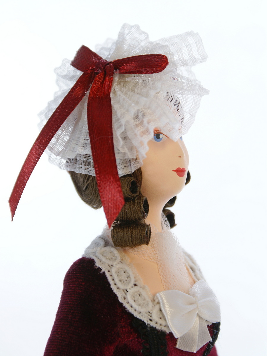 Кукла Потешного промысла в женском выходном костюме конца 18 века. Париж. Позднее рококо. Франция. Материал фарфор. текстиль. высота 27 см. Артикул 1252.