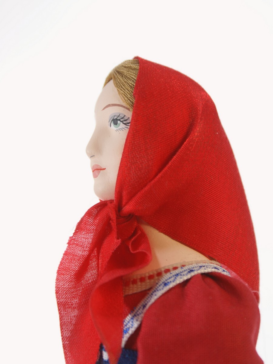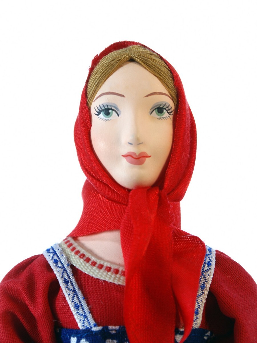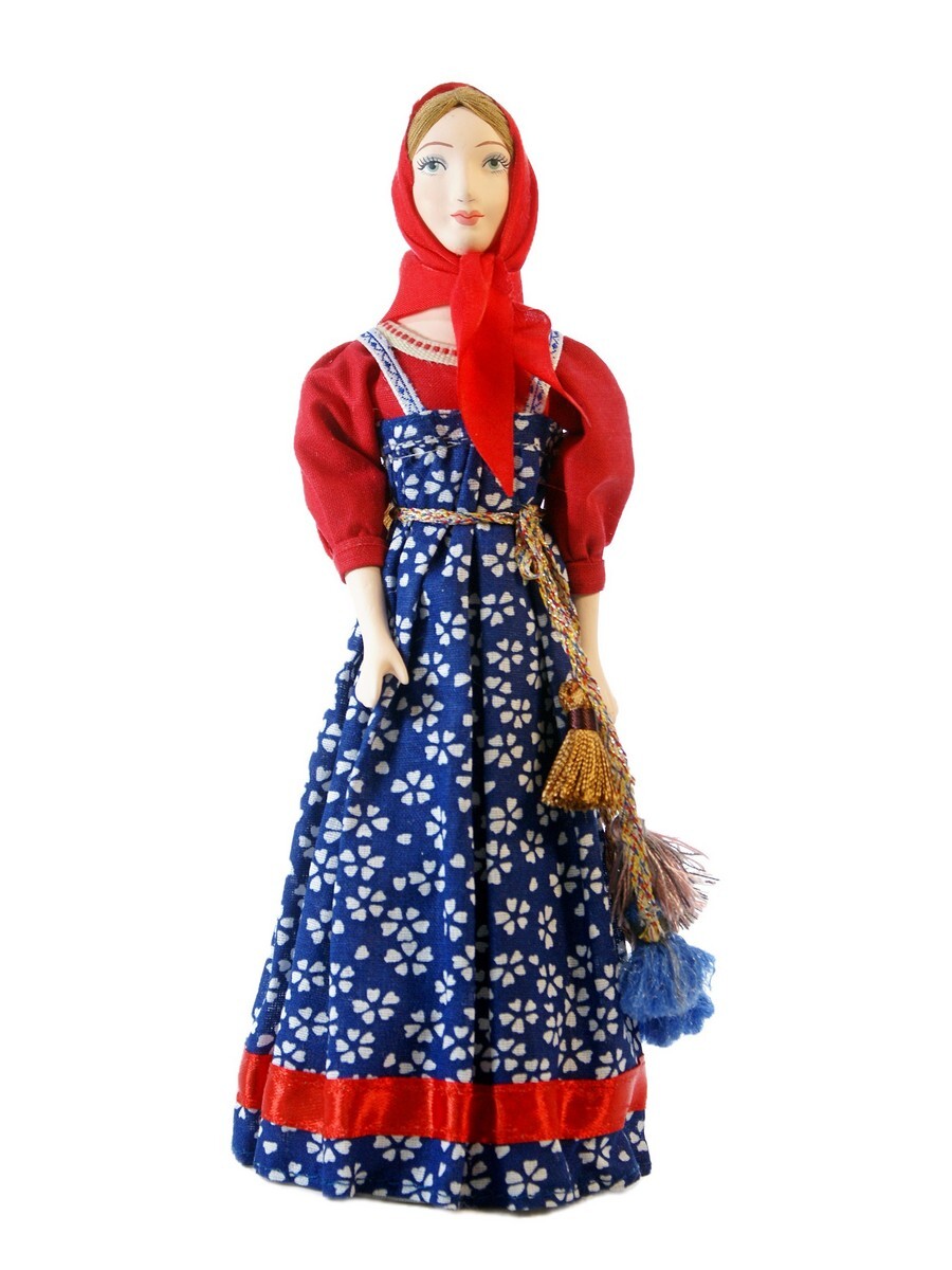 Кукла фарфоровая сувенирная коллекционная девушка в свадебном костюме коренных малочисленных народов Ленинградской области — вепсов. Для подарка, украшения интерьера, в коллекцию. Голова, торс и руки куклы выполнены из фарфора в собственной керамической мастерской (горячий обжиг при температуре +1200 градусов Цельсия), расписана акриловыми/темперными красками. Высота 25 см, костюм текстильный (ситец, атлас, тесьма) несъемный, в основании — конус из плотного картона, обтянутый тканью, ног у данной модели не предусмотрено. Поставляется в крафтовой транспортировочной коробке с фирменным логотипом, зип-пакете и пузырчатой плёнке. Кукла создана в Санкт-Петербурге профессиональными мастерами и художниками из качественных, безопасных материалов российского производства. Мы стараемся поддерживать актуальность изображений, однако это кукла ручной работы, поэтому конкретные экземпляры одной модели и одного выпуска похожи друг на друга как близнецы, но могут отличаться в мелких деталях. Куклы одной модели разных выпусков могут также отличаться деталями и цветом одежды