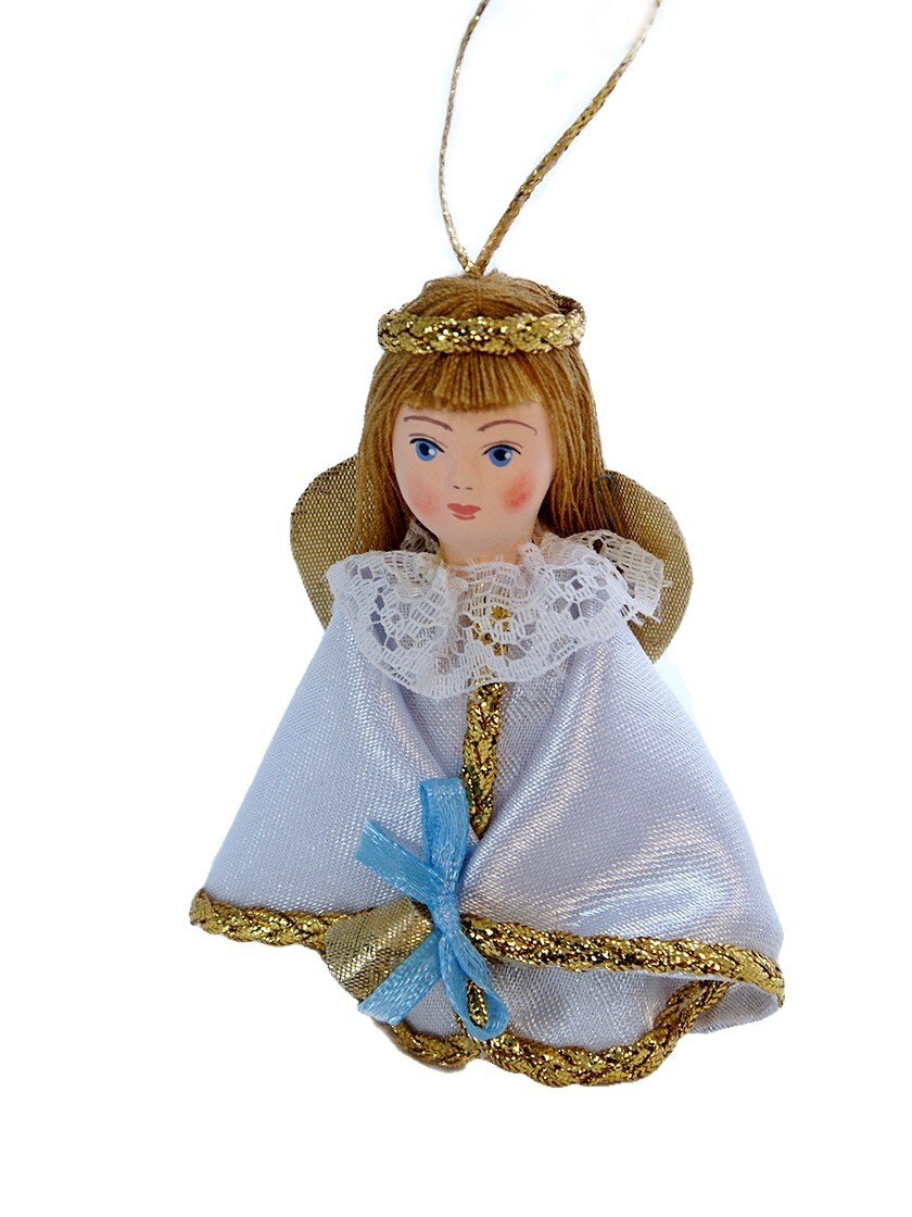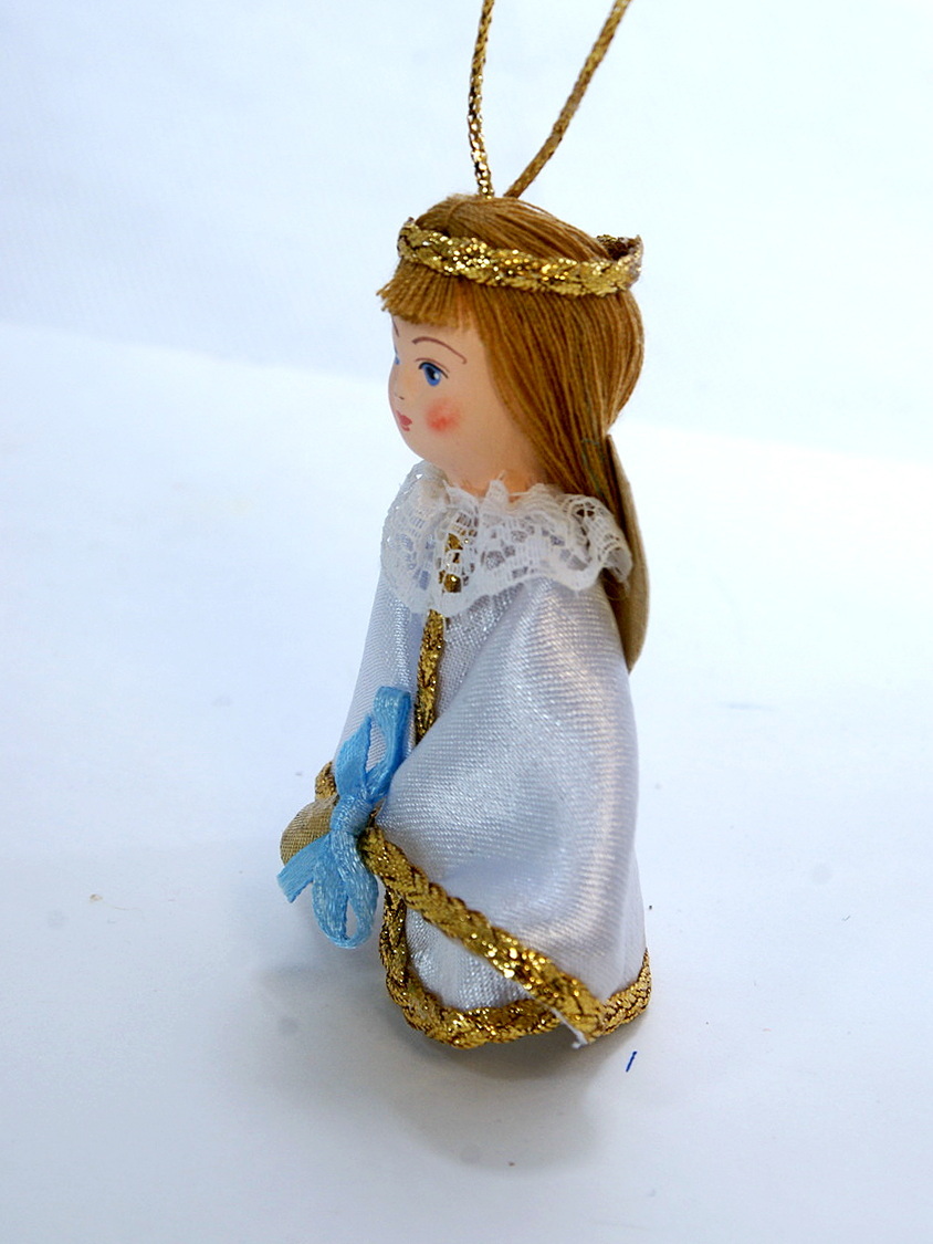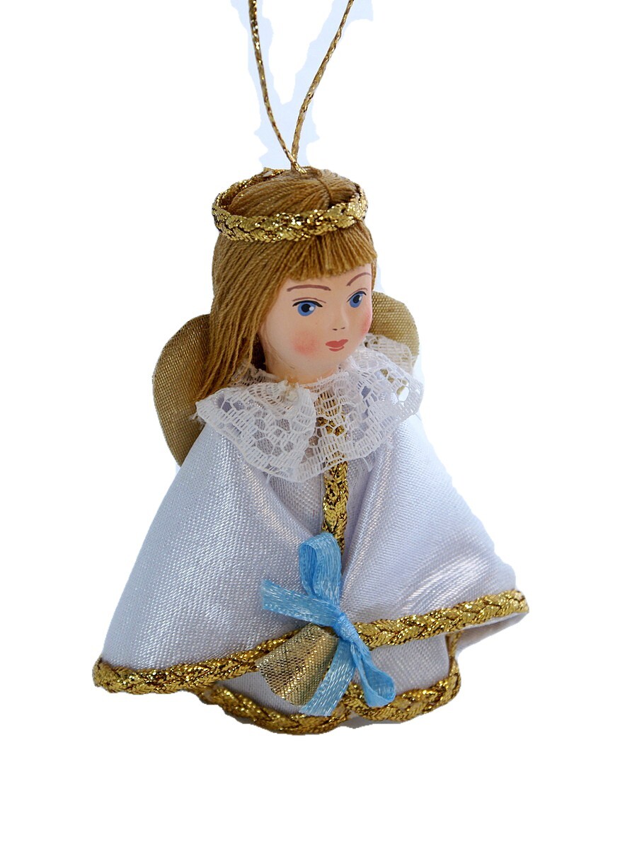 Кукла-подвеска Потешного промысла Ангел с колокольчиком. Фарфор, текстиль. Высота 8 см. Артикул 1462.