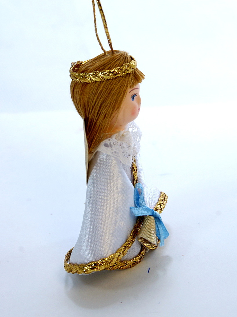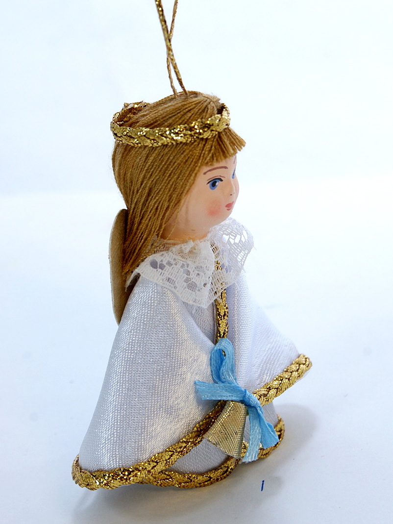 Кукла-подвеска Потешного промысла Ангел с колокольчиком. Фарфор, текстиль. Высота 8 см. Артикул 1462.