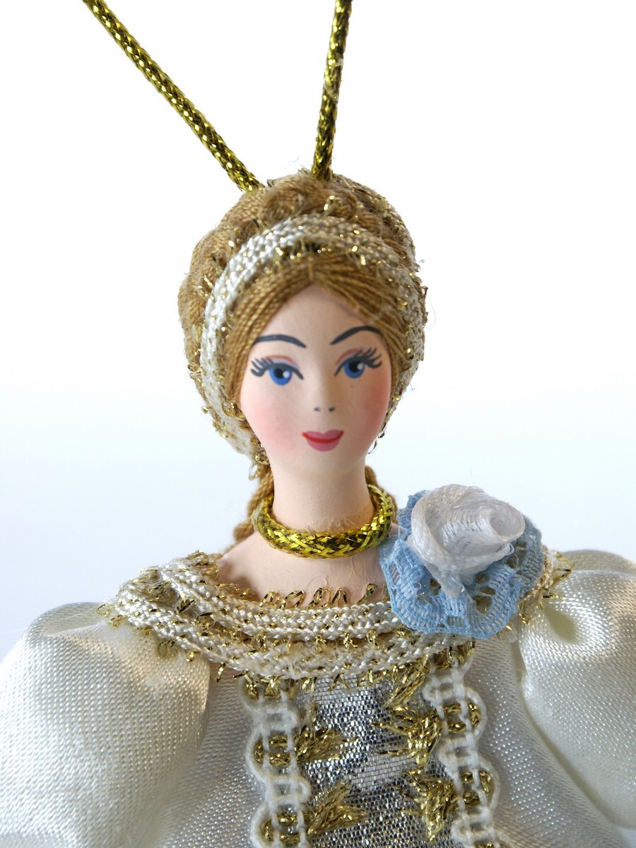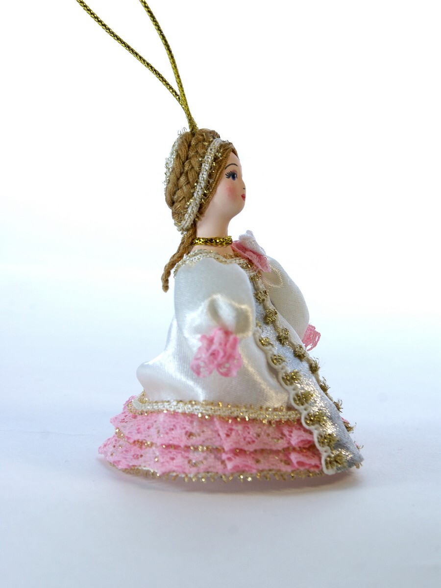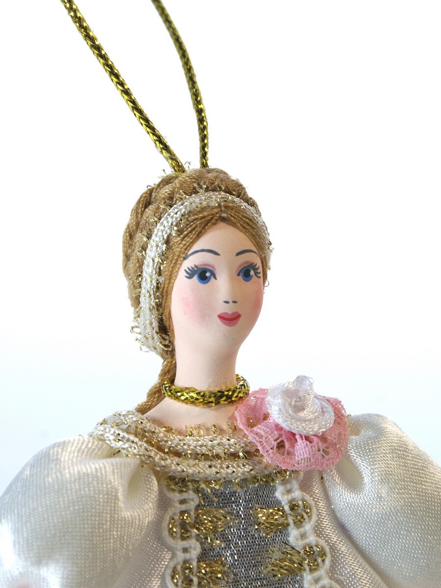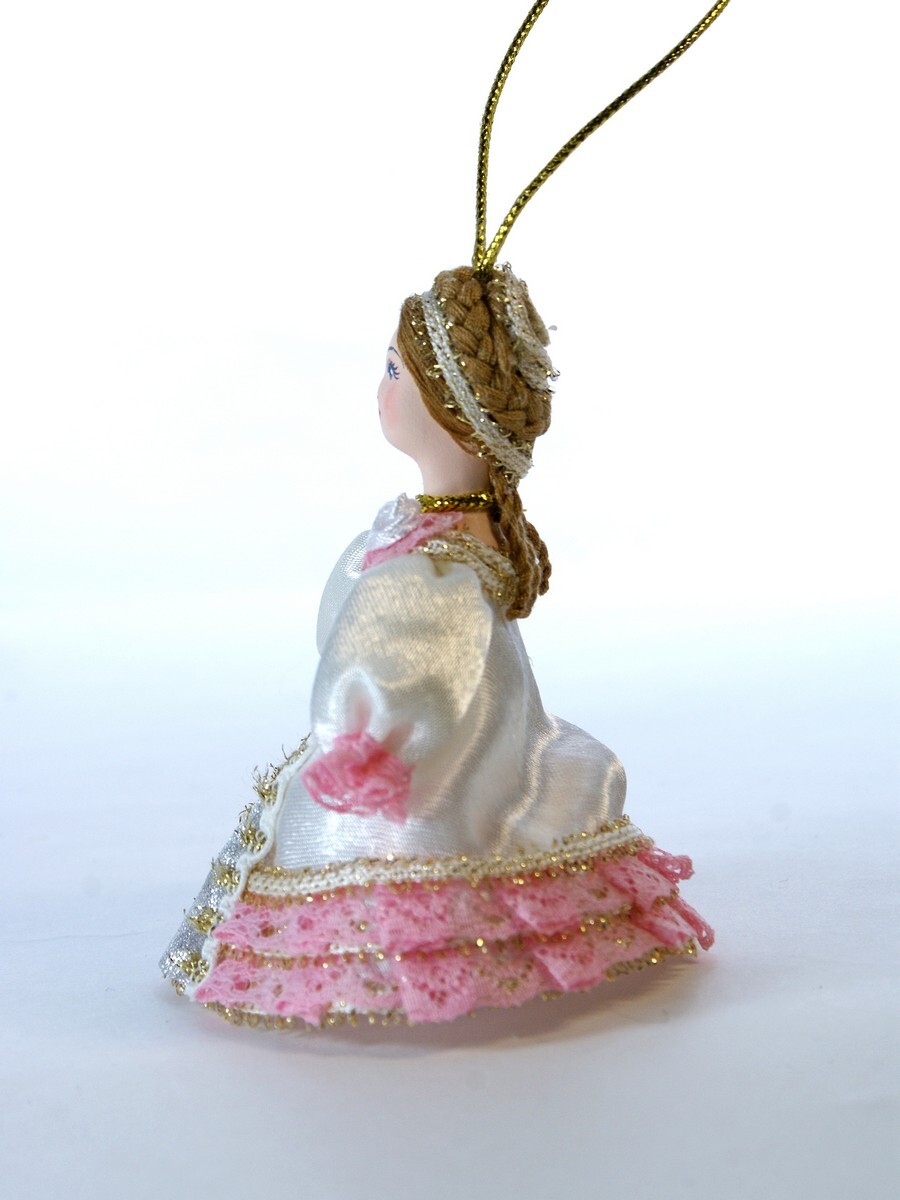 Кукла-подвеска Потешного промысла сувенирная фарфоровая. Дама в бальном платье.Материал фарфор, текстиль. Высота 12 см. Артикул 1631.