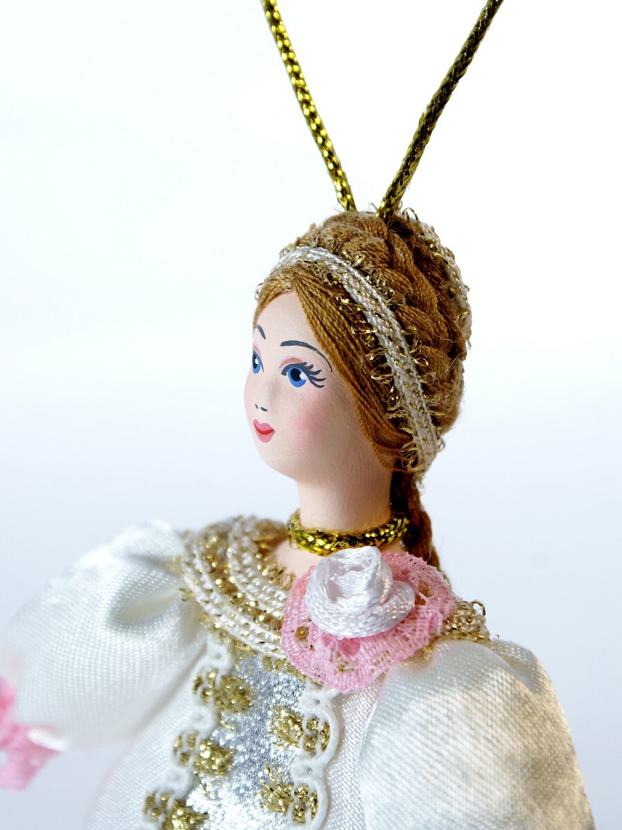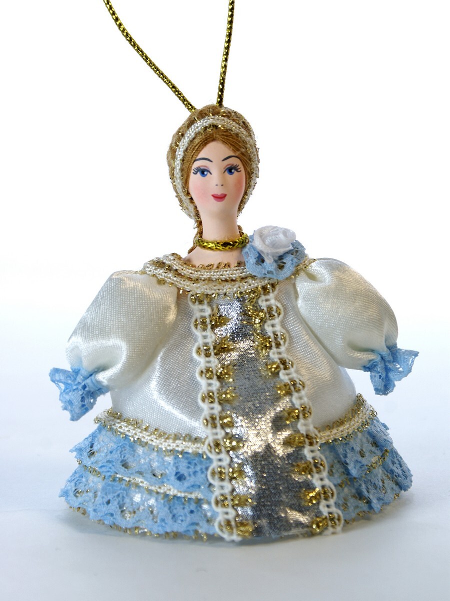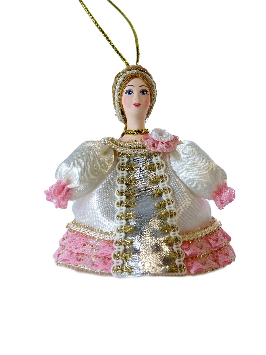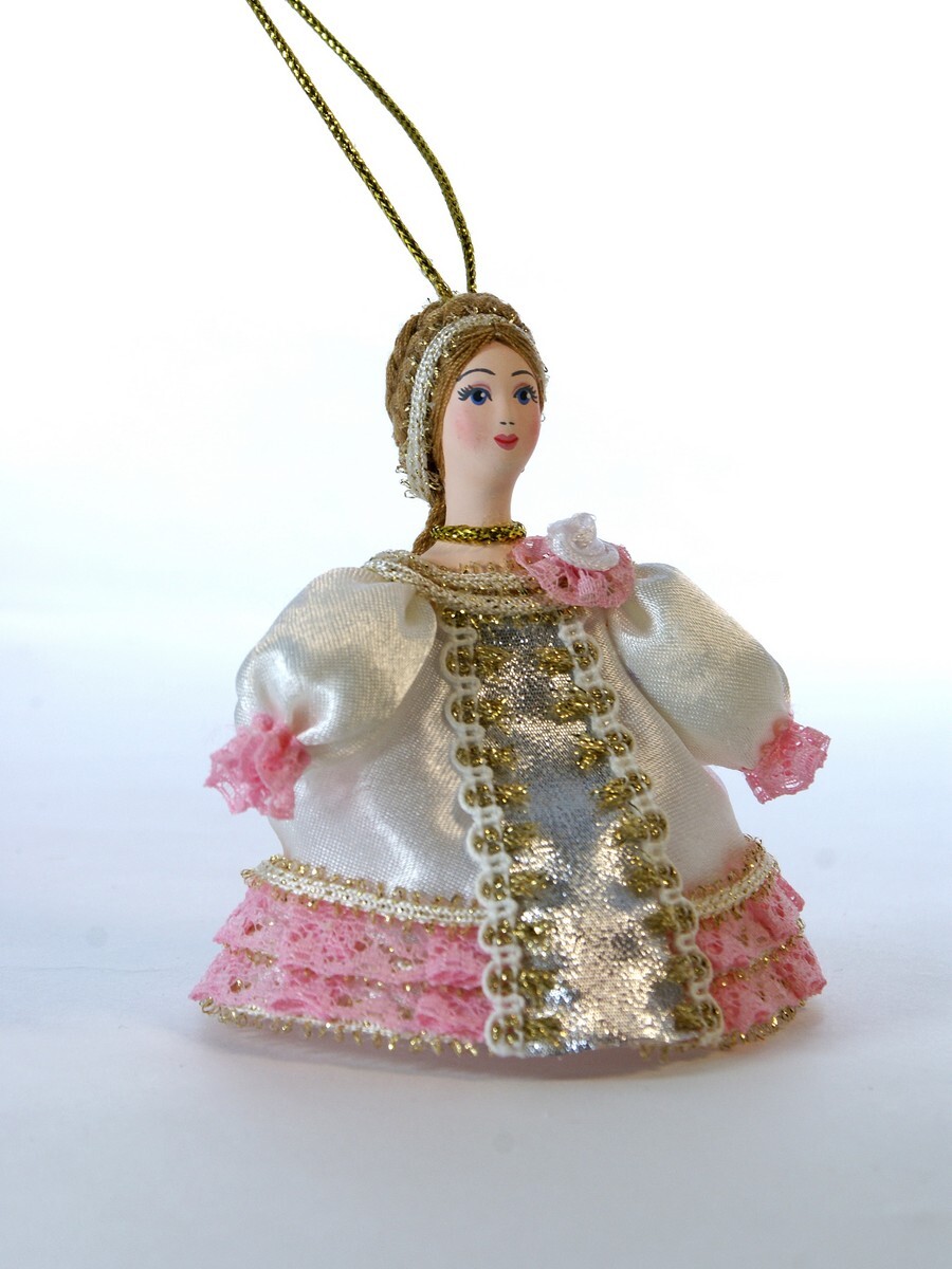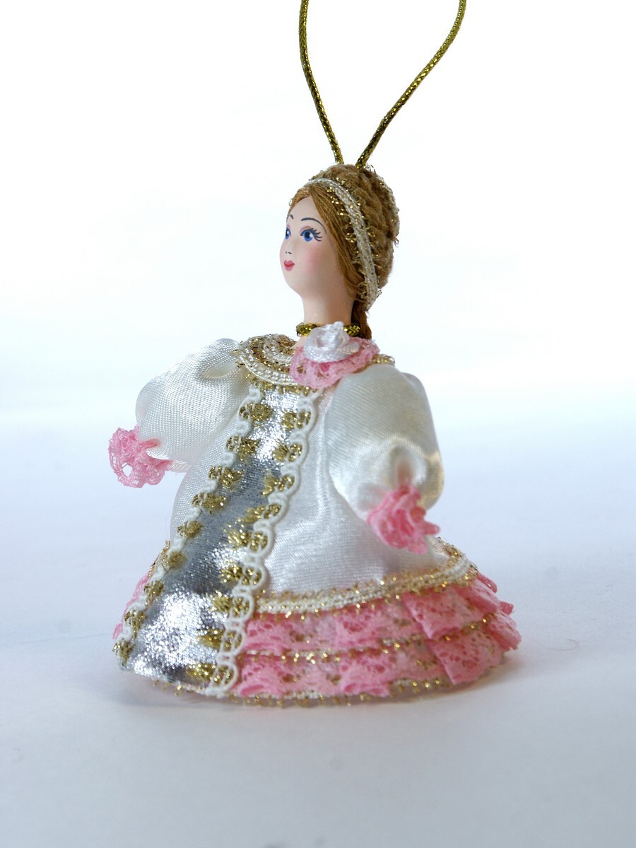 Кукла-подвеска Потешного промысла сувенирная фарфоровая. Дама в бальном платье.Материал фарфор, текстиль. Высота 12 см. Артикул 1631.
