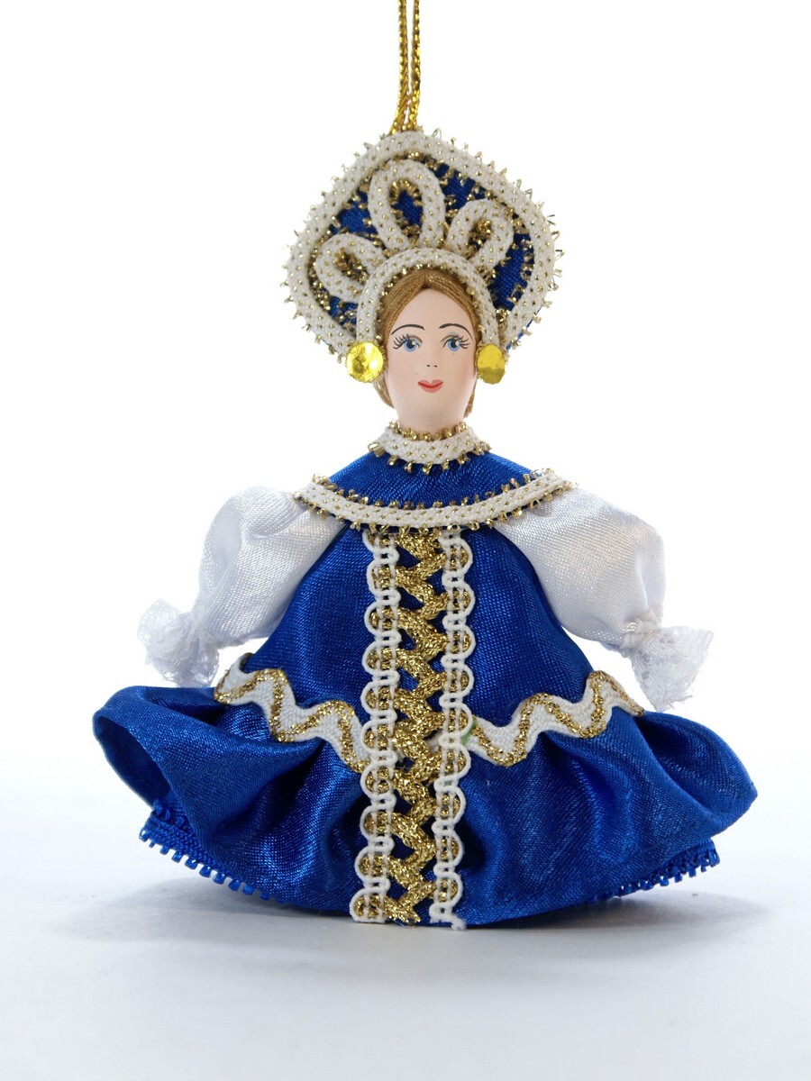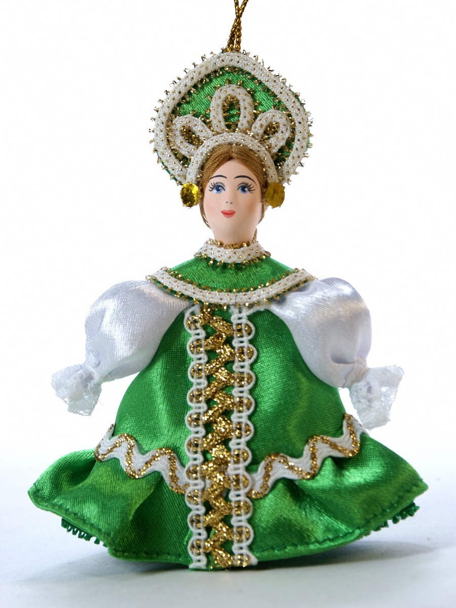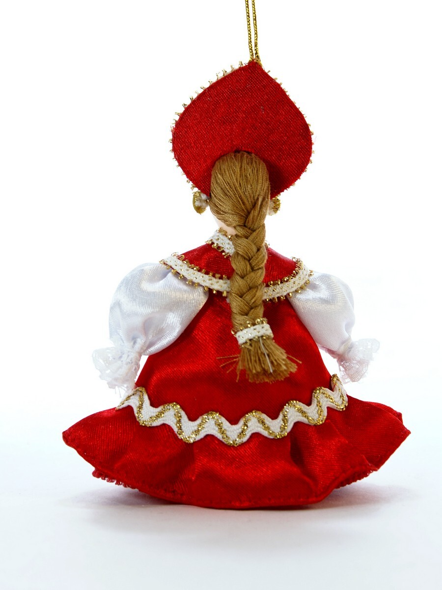Кукла-подвеска Потешного промысла девочка в летнем платье с воланом. Материал фарфор, текстиль. Высота 13 см. Артикул 0991.