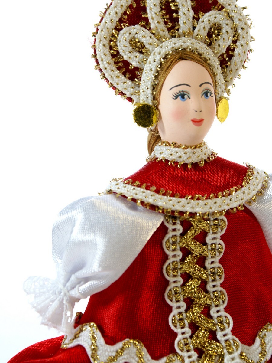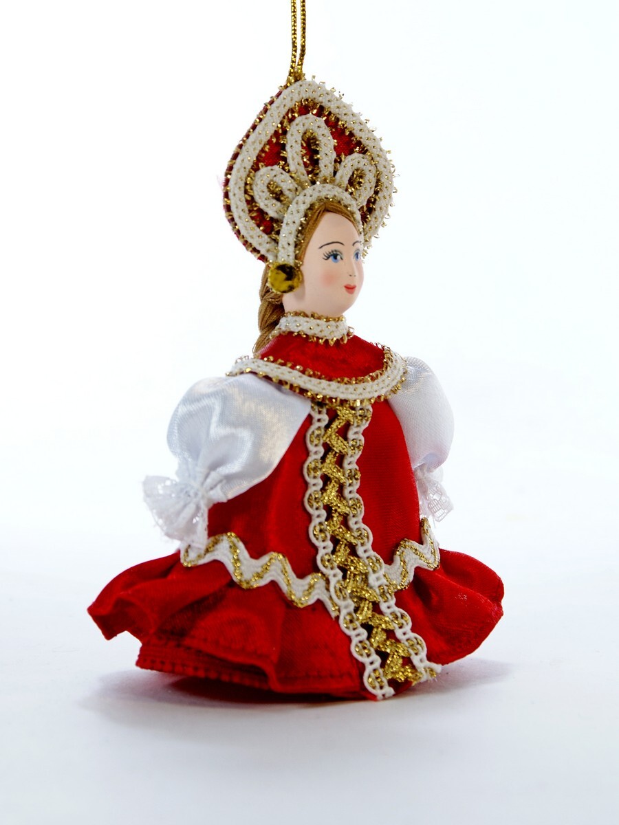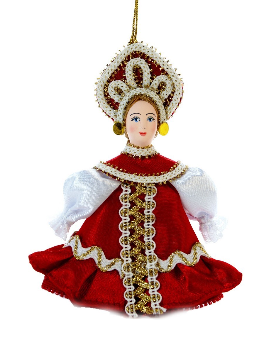 Кукла-подвеска Потешного промысла девочка в летнем платье с воланом. Материал фарфор, текстиль. Высота 13 см. Артикул 0991.
