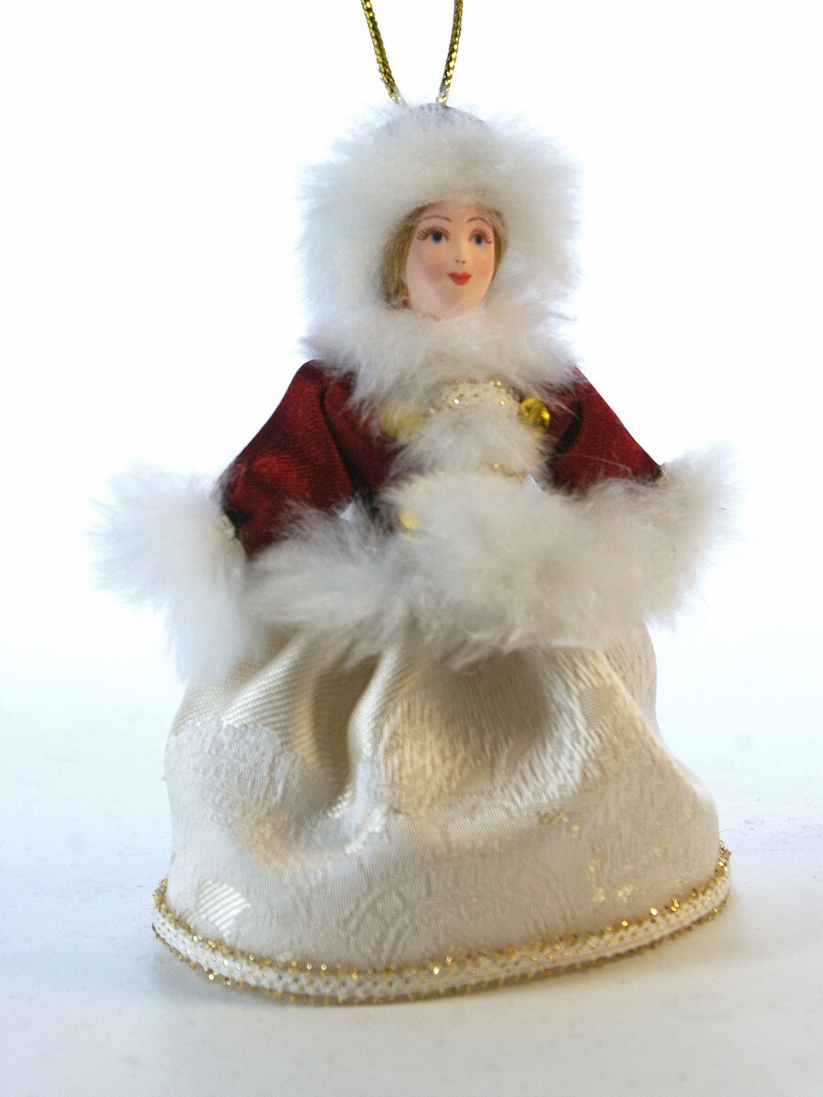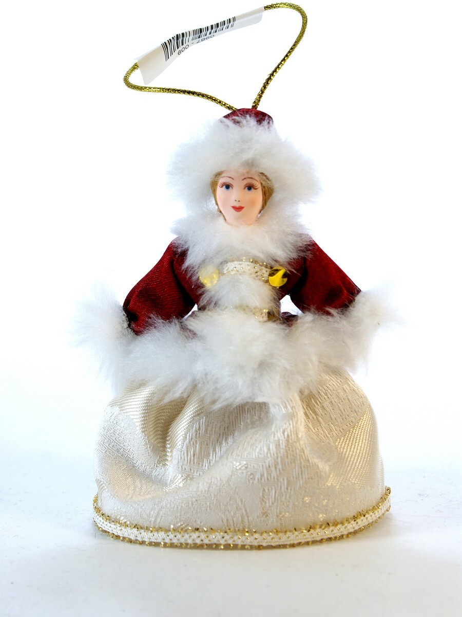 Кукла-подвеска Потешного промысла Девочка в зимней одежде. Материал фарфор, текстиль. Высота 13 см. Артикул 0967.