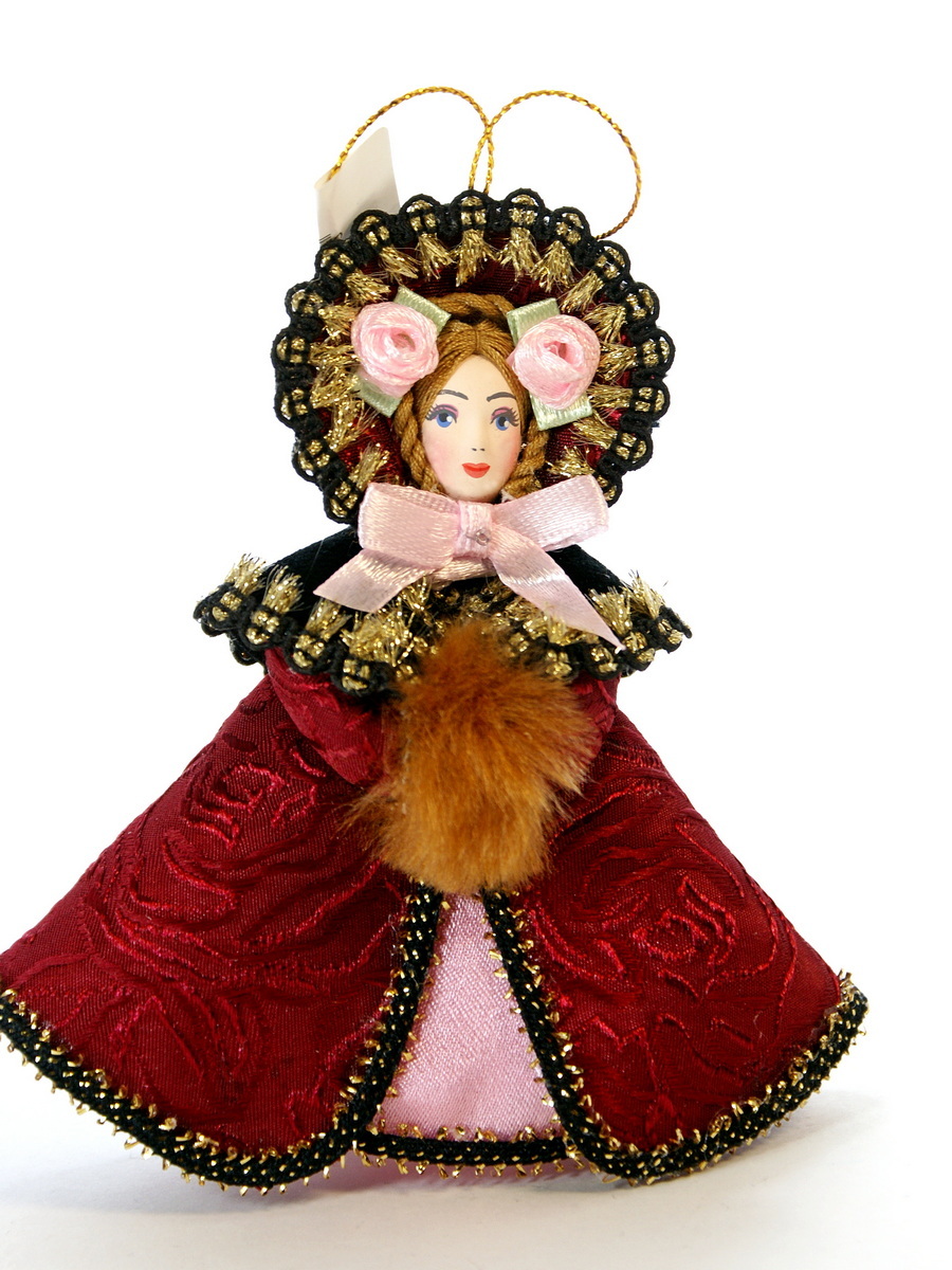 Кукла-подвеска Потешного промысла девушка с муфтой. Материал фарфор, текстиль. Высота 12 см. Артикул 1037.