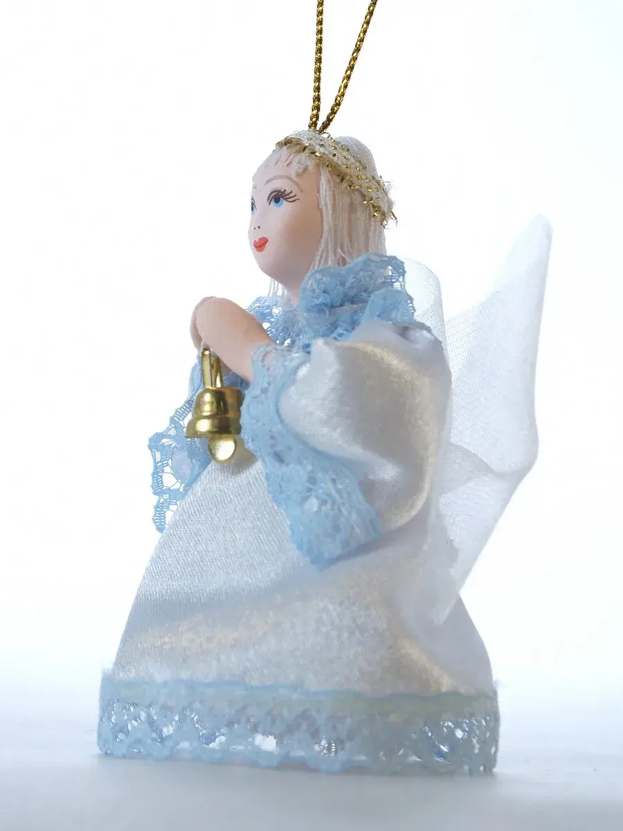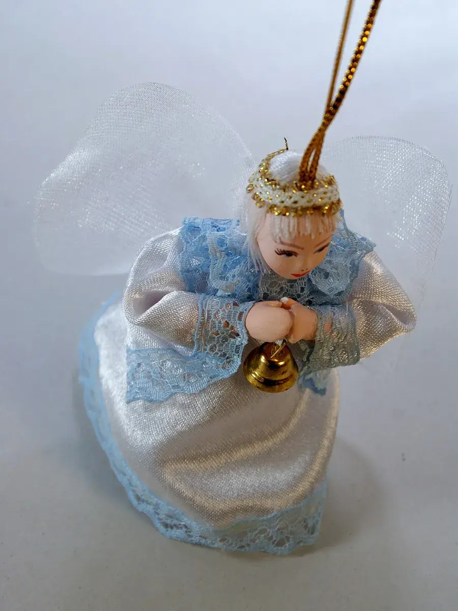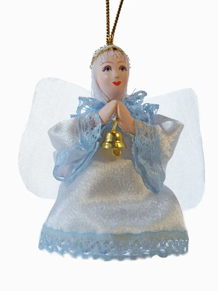Кукла подвеска Потешного промысла «Летящий ангелочек с трубой». Материал фарфор, текстиль. Высота 10 см.
