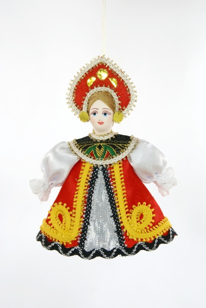 Кукла-подвеска Потешного промысла Марья-краса. Материал фарфор, текстиль. Высота 12 см. Артикул 0573.