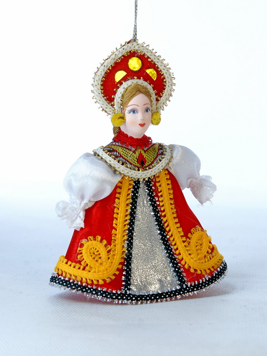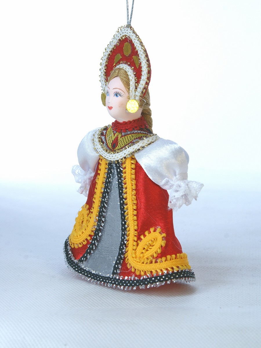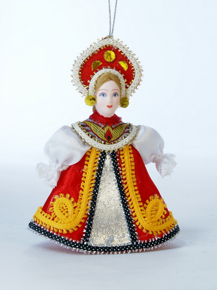 Кукла-подвеска Потешного промысла Марья-краса. Материал фарфор, текстиль. Высота 12 см. Артикул 0573.
