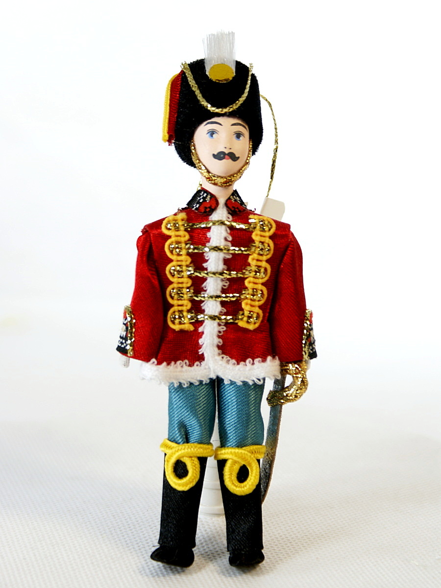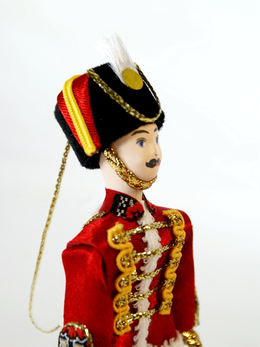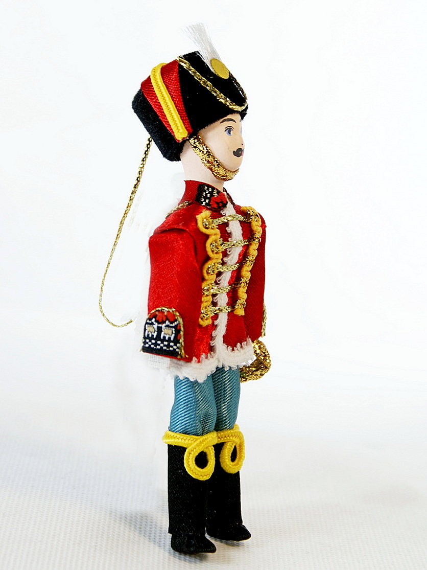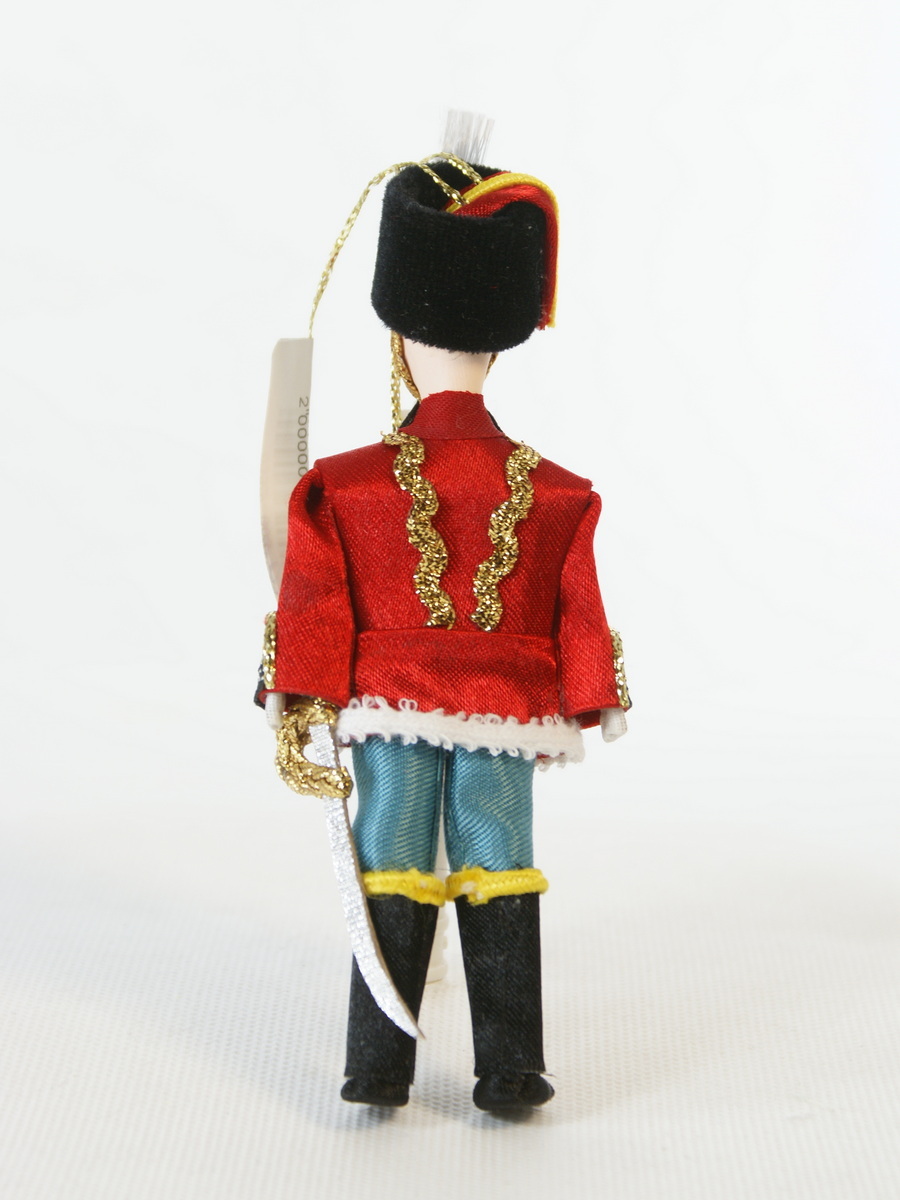 Кукла-подвеска Потешного промысла Лейб-гусар. Начало 19 века. Россия. Материал фарфор, текстиль. Высота 13 см. Артикул 0332.